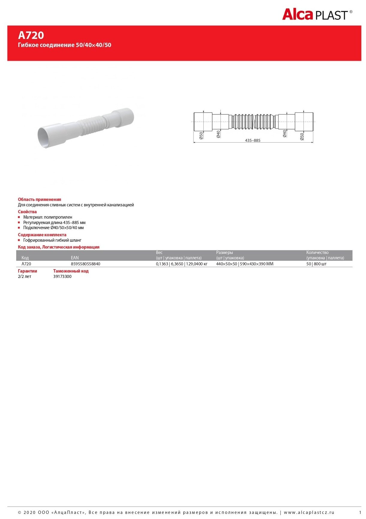 Сервис сравнения цен СкидкаГИД предлагает сравнить цены на товар «Гибкое соединение (гофра) Alcaplast A720 50/40x40/50»