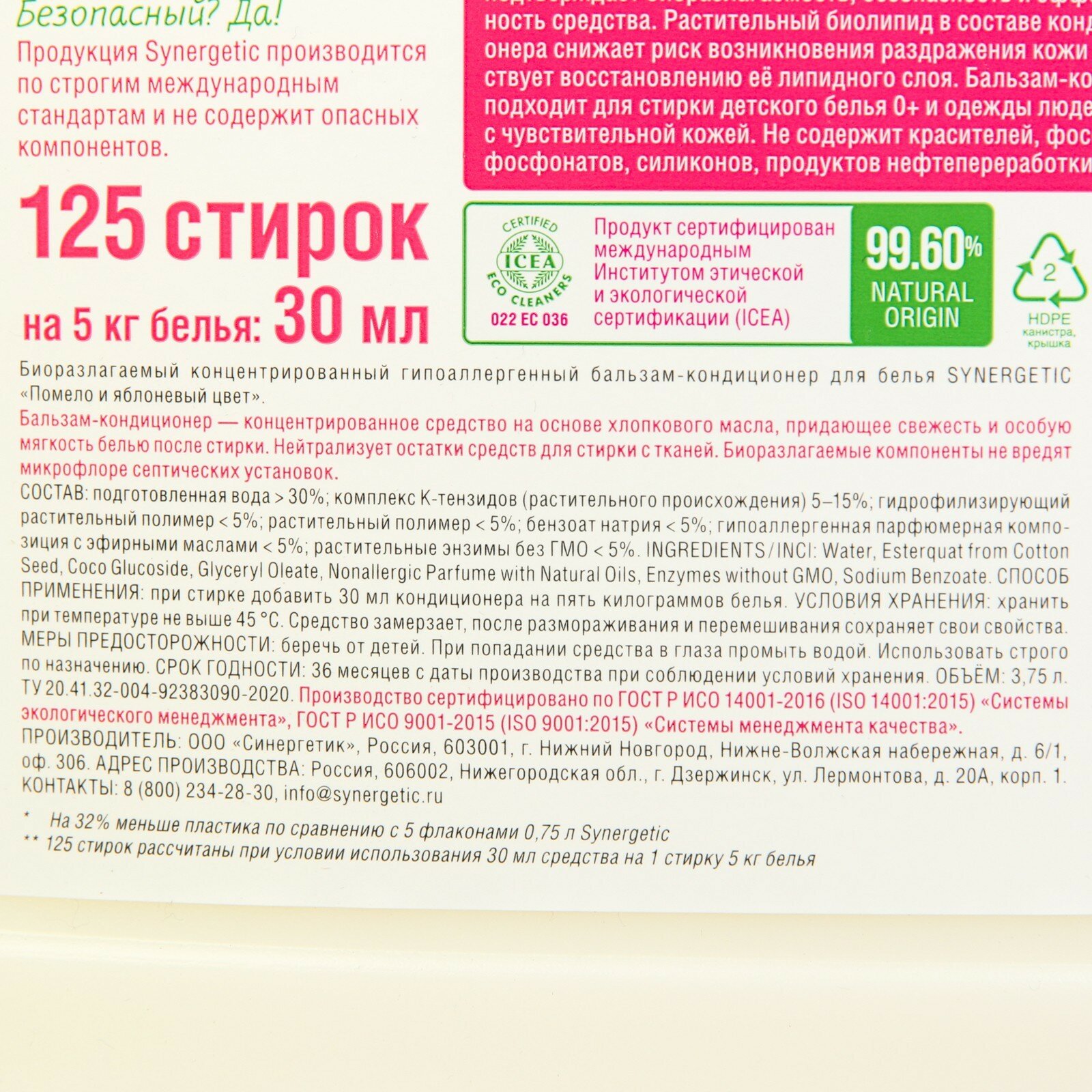 Биоразлагаемый гипоаллергенный бальзам-кондиционер Synergetic "Помело и Яблоневый цвет" 750мл (110071)
