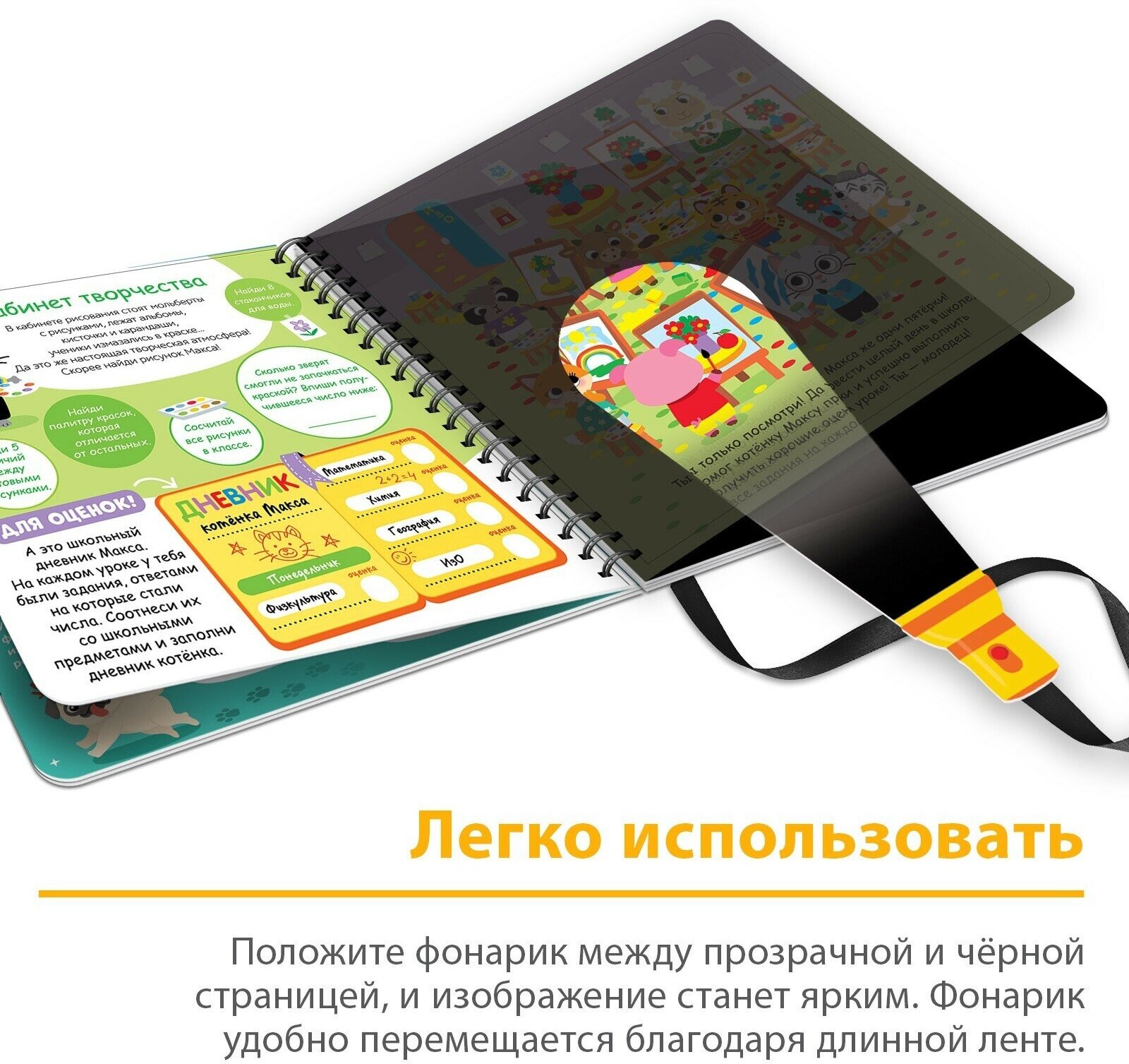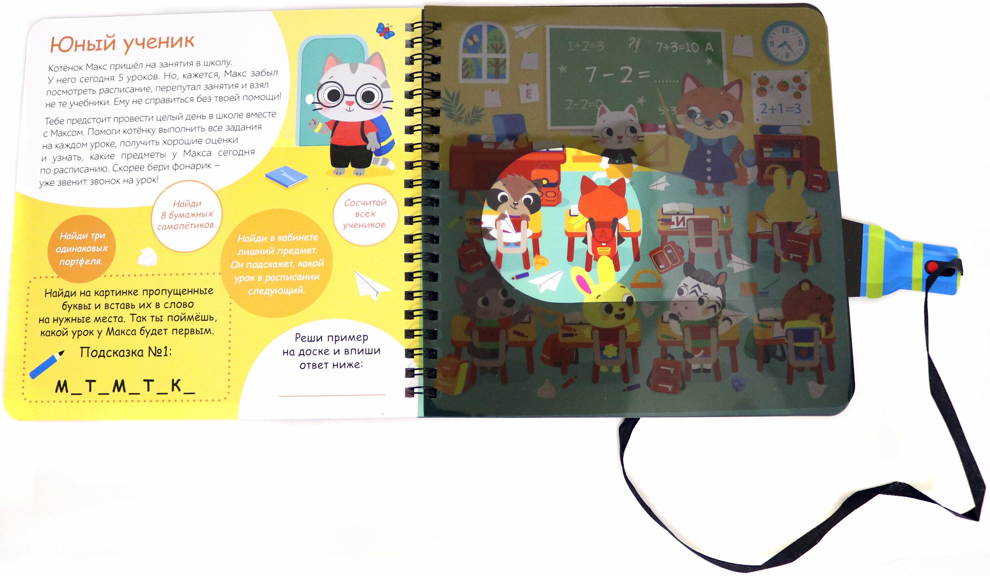 Книжка с фонариком "Посвети и найди. День в школе" (без автора); Буква-ленд, 2021