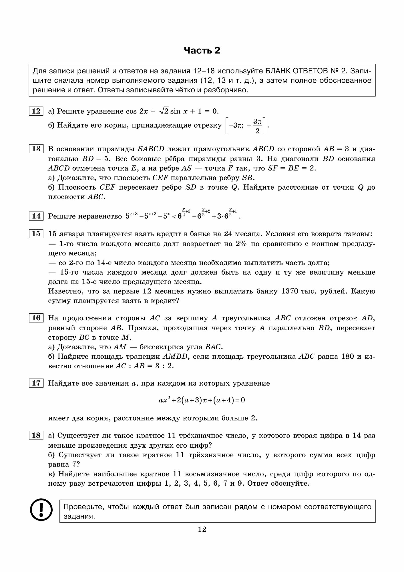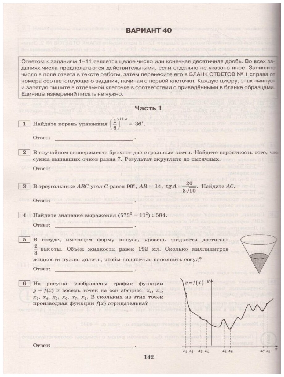 Книга соответствует новому содержанию профильного ЕГЭ по математике, две задачи по теории вероятностей , задание с функцией в первой части. Некоторые задания второй части , взяты из текстов прошлого года этих же авторов, но во второй части изменений нет, поэтому вполне допустимо для подготовки.