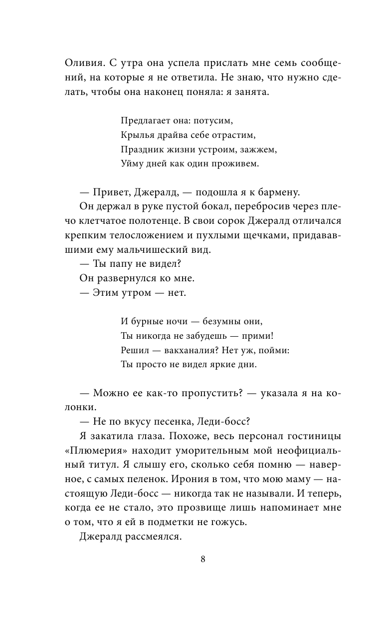 «Какой восхитительный дебют! Он похож на идеальный отпуск на острове: такой же свежий, теплый, романтический, наполненный добротой и любовью». — Жасмин Гиллори, автор книги The Wedding Date