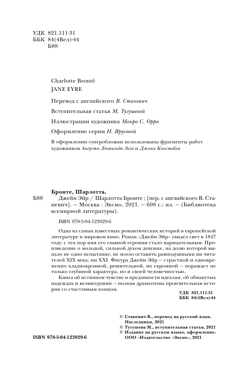 Книга: Джейн Эйр (Шарлотта Бронте); Эксмо, Редакция 1, 2021