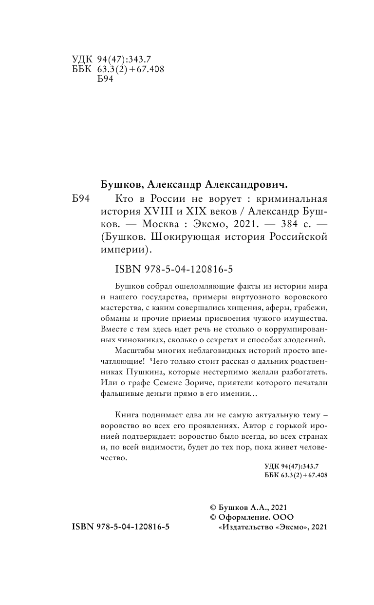 Кто в России не ворует. Криминальная история XVIII и XIX веков (Бушков Александр Александрович); Эксмо, Редакция 1, 2021