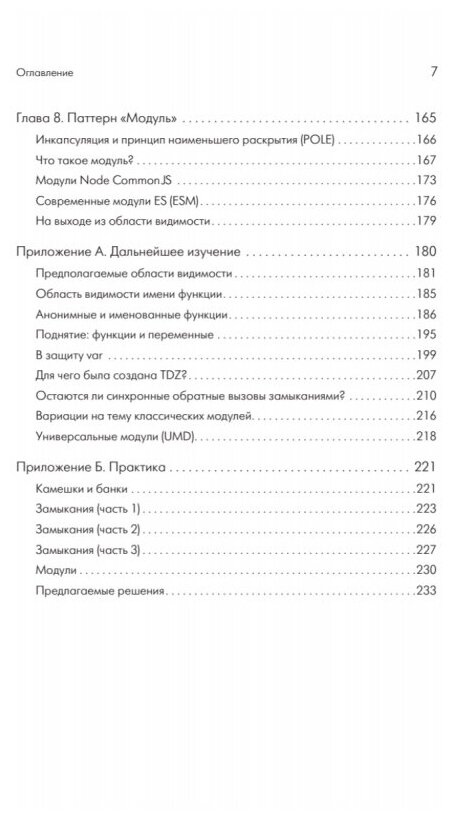 Вдобавок книга полна уважения к языку - к области, о которой автор рассказывает. Редкое качество среди авторов книг о JS (обычно сквозит каким-то пренебрежением или желанием рассказать всякую "бесполезную нудятину" побыстрее). Так же чувствуется, что автор обожает JS, принимая во внимание как его плюсы, так и минусы. В этом отношении есть сходство с книгами Рейзига.