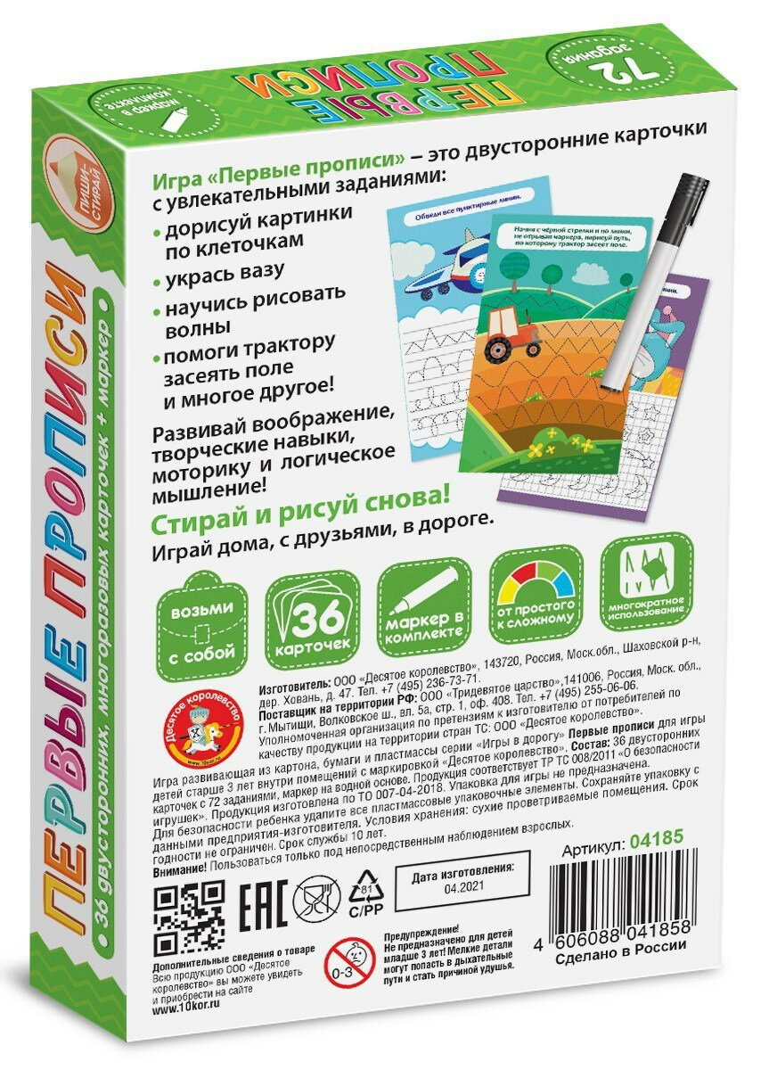 Развивающая игра Пиши-Стирай. Первые прописи Десятое королевство