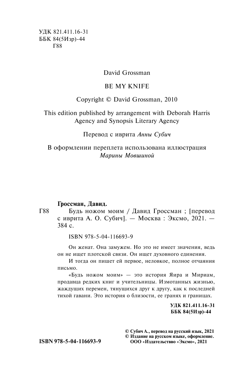 Книга: Будь ножом моим (Гроссман Давид); ООО "Издательство "Эксмо", 2021