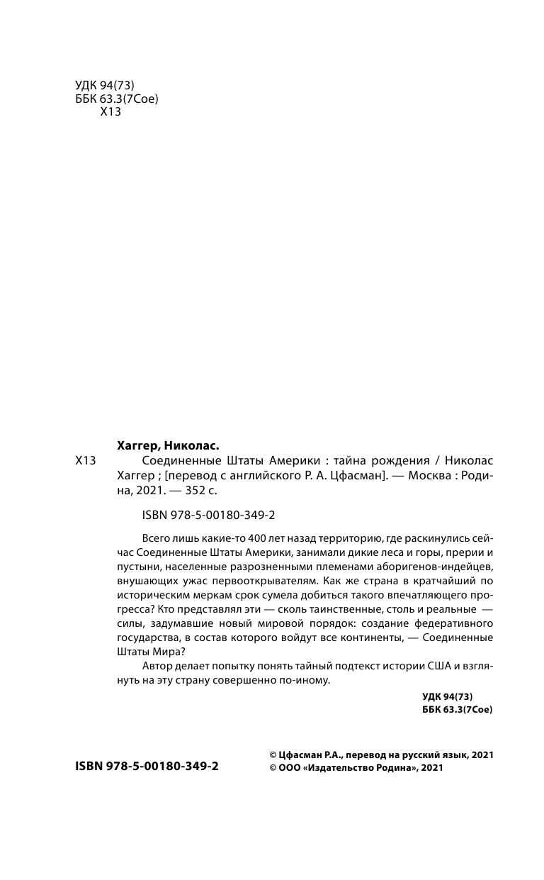 Соединенные Штаты Америки. Тайна рождения (Николас Хаггер); Алисторус, 2020