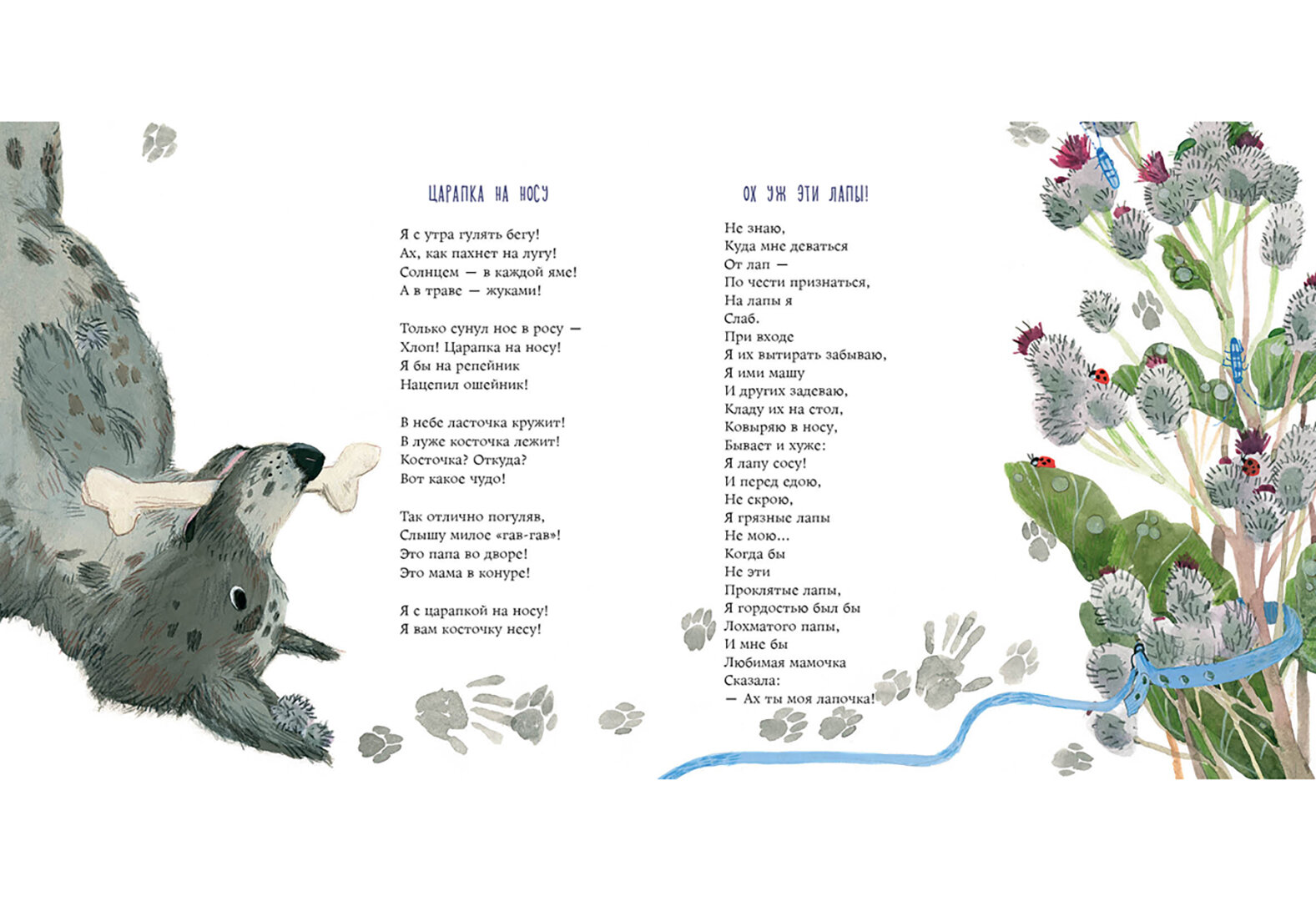 Стихи приятные, легкие. Посвящены разным темам. Причем в текстах фигурирует семья не только в классическом представлении. К примеру, под семьей подразумеваются и собаки со щенками. Стихотворение "Царапка на носу" как раз об этом. Мне это очень понравилось. В наше время понятие семьи слишком узко, семья-нечто замкнутое. В книге же это понятие охватывает массу явлений, в том числе природу и животных. Я считаю, это просто замечательно. Ребенок должен мыслить шире, проводить параллели. В связи с этим вижу в книге моральную и эстетическую глубину.