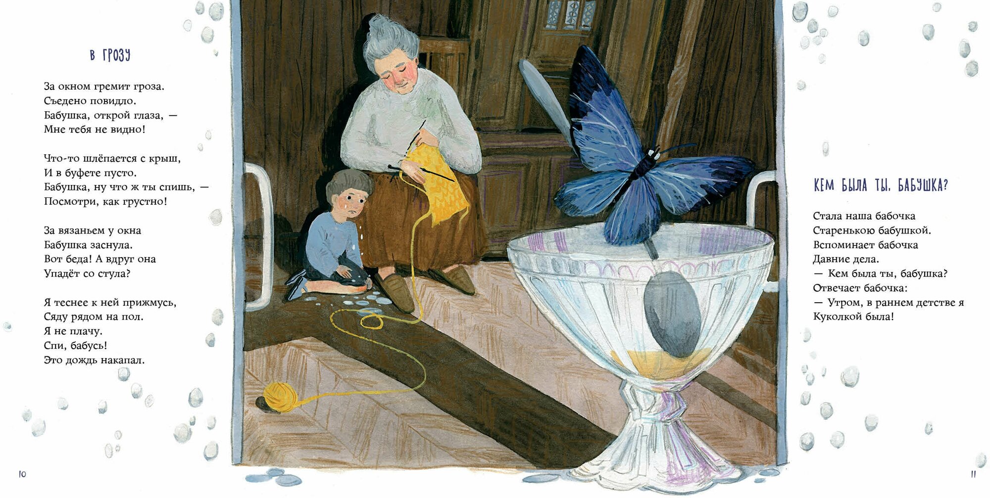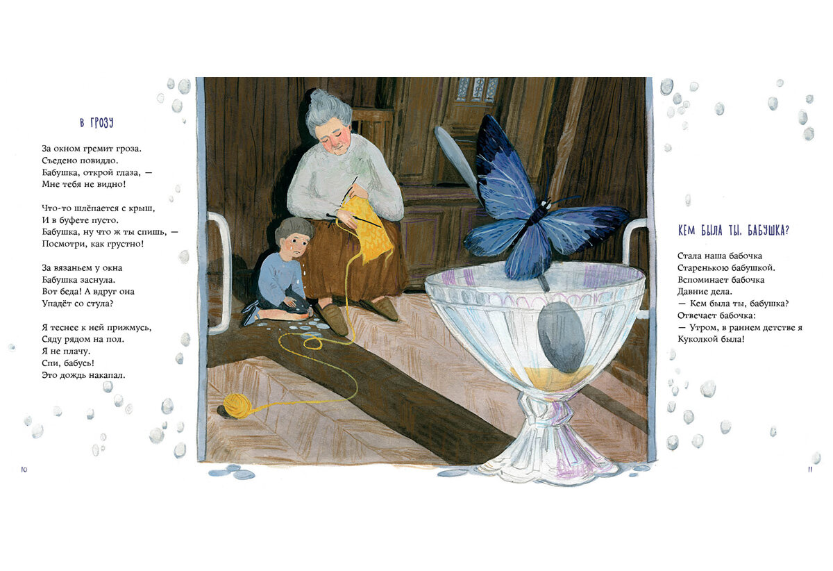 Читаешь стихотворение и оно навевает много знакомых памятных моментов из детства. Про бабушку, дедушку, маму с папой, братика или сестру, домашних питомцев и игрушки. Бытовые моменты окутаны озорством, нежностью, любопытством, восторгом, сочувствием, мечтательностью, любовью - всем самым искренним, что есть в сердце у маленького человека.