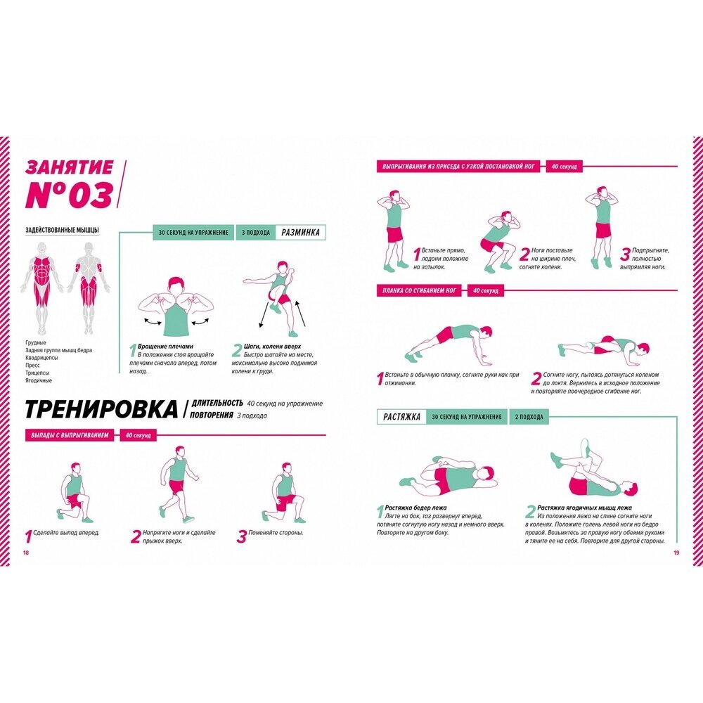 Доказано: всего 7 минут регулярных физических занятий могут принести огромную пользу для всего организма, укрепить мышцы и избавить от лишнего веса. Комплексная программа коротких ежедневных тренировок по системе ВИИТ (высокоинтенсивный интервальный тренинг) поможет восстановить форму за 30 дней. Главная идея системы ВИИТ – очень интенсивные упражнения, чередующиеся с короткими перерывами. Это оптимальный выбор для тех, кто стремится к идеальной фигуре и кому важен быстрый и заметный результат: расходуя энергию во время занятий, организм сжигает резервные калории, уничтожая жировые отложения, а не мышечную массу. Жир исчезает очень быстро, мышцы укрепляются надолго, ваш силуэт улучшается на глазах! Тренироваться можно в любое время дня и где угодно, вам не понадобится специальных приспособлений и инвентаря. По этой книге можно заниматься самостоятельно, даже если вы новичок: все тренировки детально проработаны профессиональным фитнес-тренером, даны понятные иллюстрации и подробные пошаговые описания каждого упражнения.