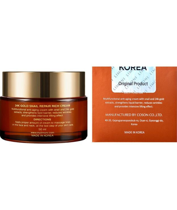 Крем для лица с золотом и экстр. слизи улитки 24K Gold Snail Repair Rich Cream 50 мл Limoni COSON Co., Ltd (1526866)