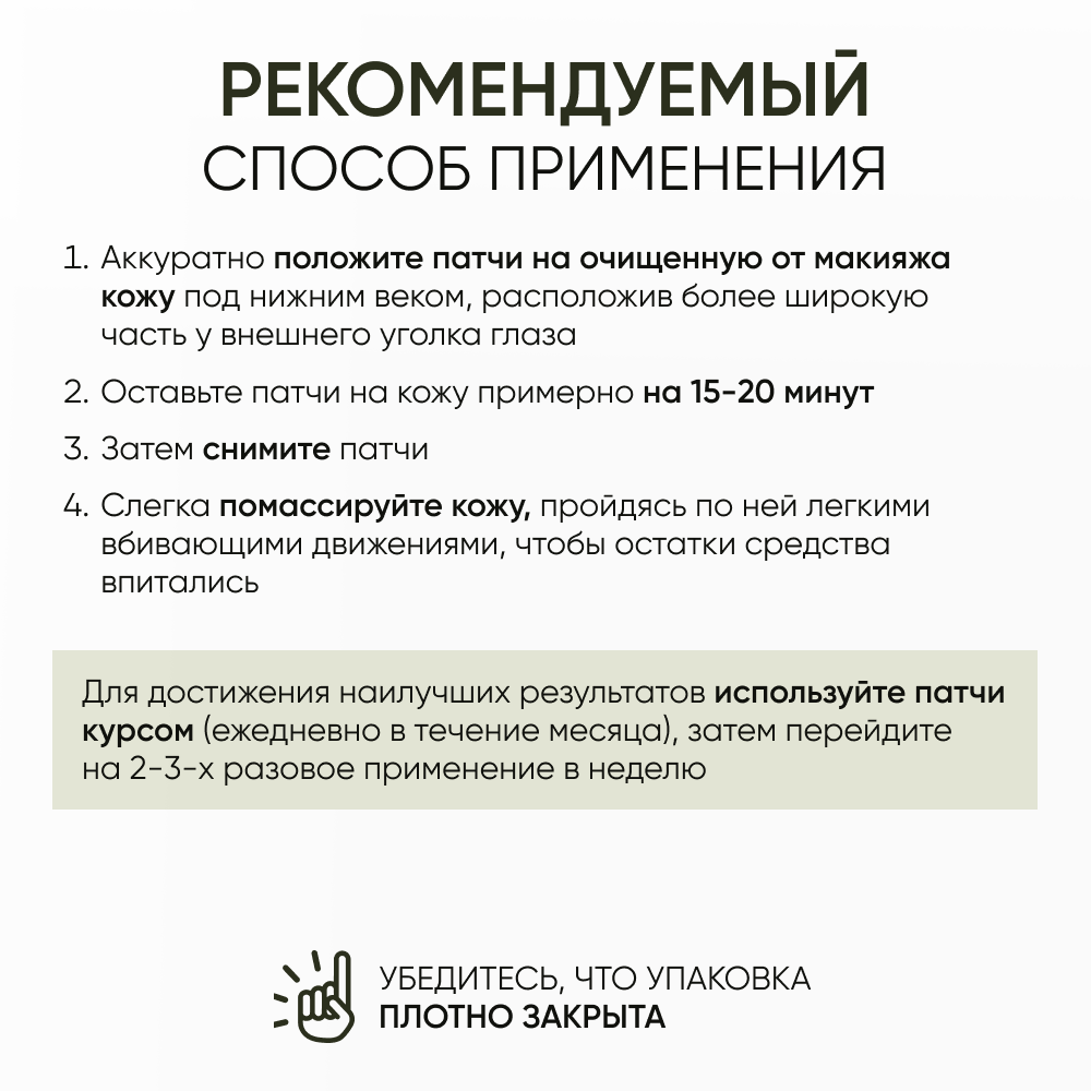 Восстанавливающие корейские патчи для кожи вокруг глаз тканевые с секрецией улитки выполняют мощную увлажняющую и тонизирующую функцию, бережно ухаживают за нежной кожей вокруг глаз. Формула патчей обогащена активными ингредиентами. Пептид Аргилерин подобно "ботоксу" уменьшает выраженность морщин. Натуральные экстракты алоэ вера и центеллы азиатской мощное антиоксидантное действие, а арбутин превосходно справляется с темными кругами под глазами, защищая кожу от их дальнейшего появления.После применения патчей кожа вокруг глаз быстро восстанавливается и приобретает здоровое сияние.