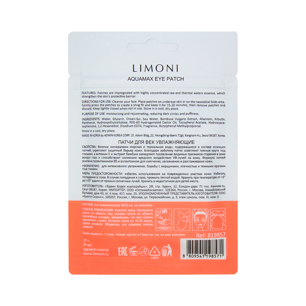 Патчи для век увлажняющие Aqumax Eye Patch 30 шт Limoni COSON Co., Ltd (1526866)