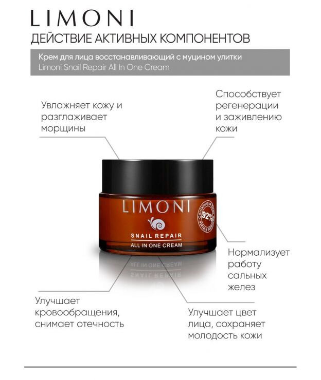 На сегодняшний день товар «Крем для лица восст с экстрактом секреции улитки Snail Repair All In One Cream 50 мл Limoni COSON Co., Ltd (1526866)» можно купить с кешбеком в 1 магазине: Яндекс.Маркет