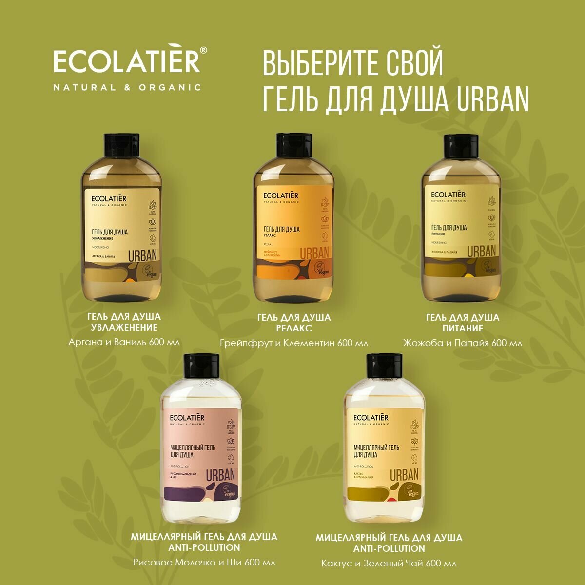 Гель для душа Детокс морские минералы & матча Ecolatier 600 мл ООО ЭкоЛаборатория (1586980)