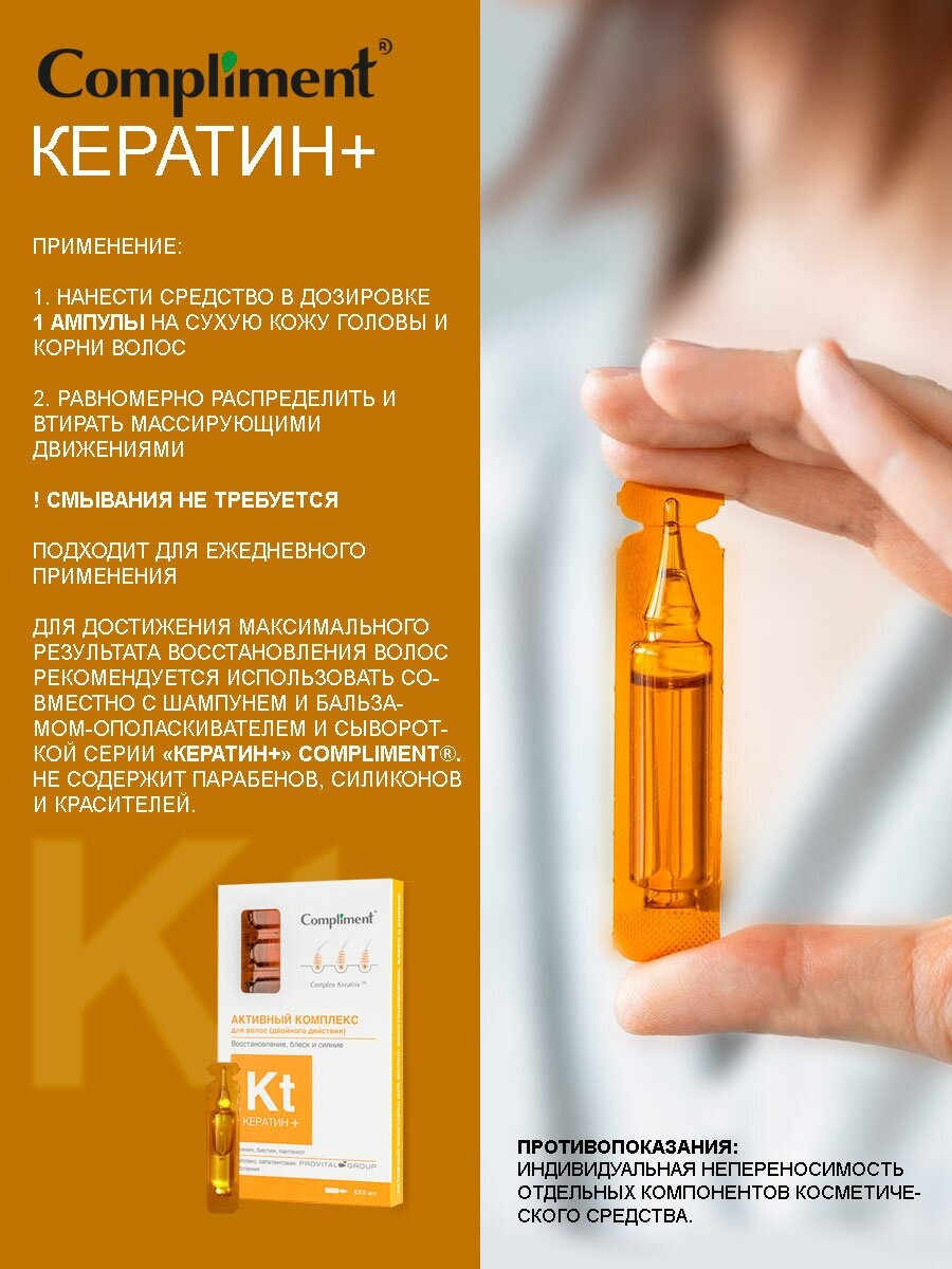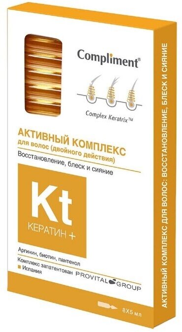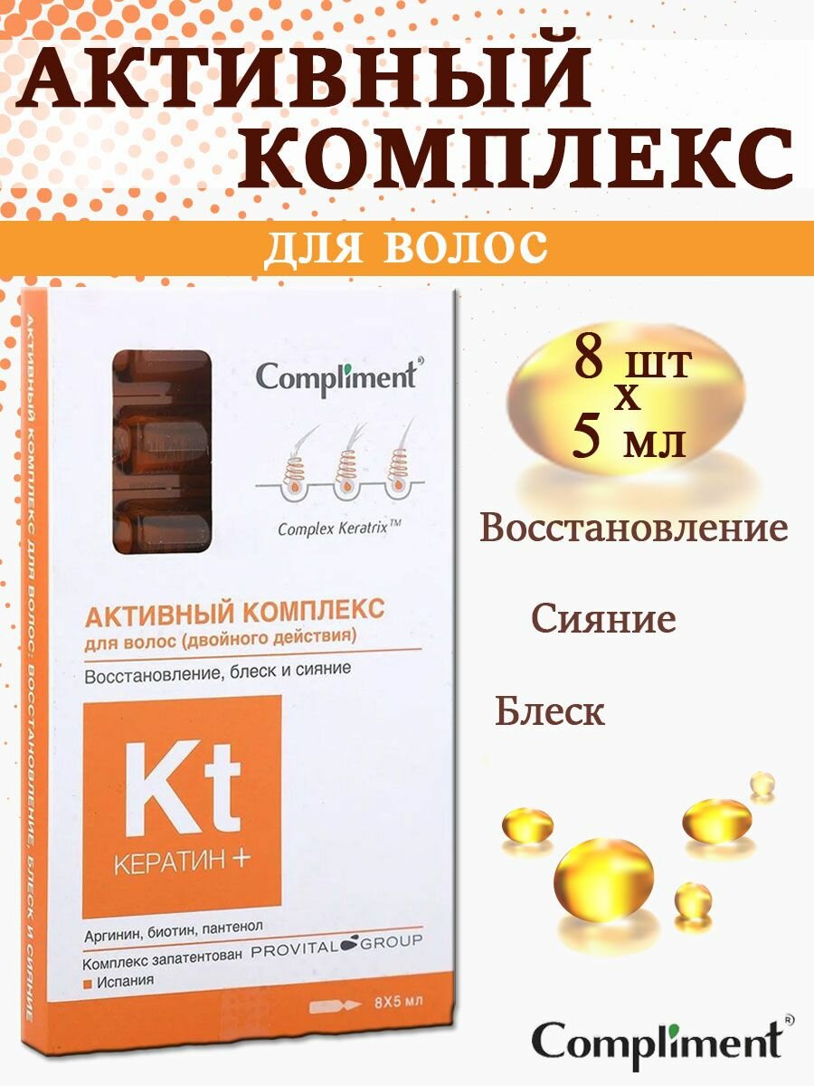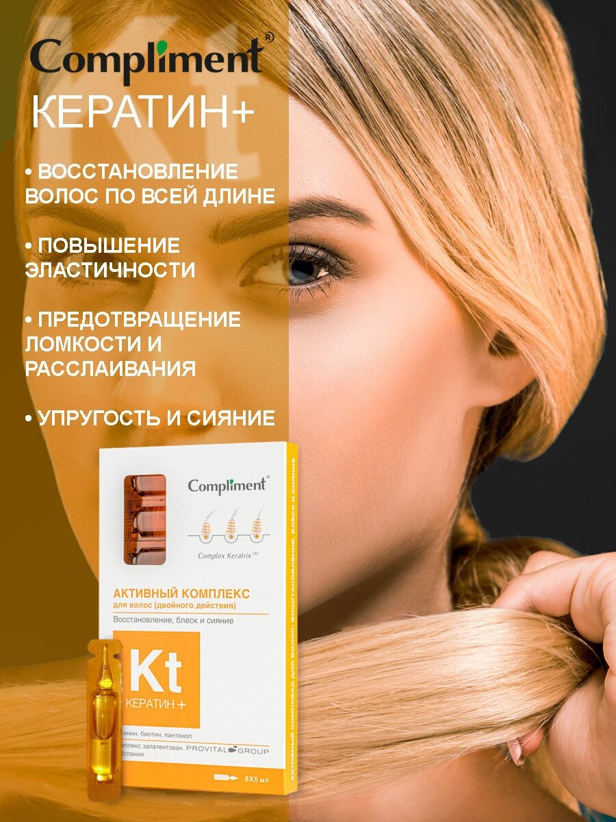 Комплекс для волос активный Кератин+" восстановление блеск и сияние Compliment 5 мл 8шт" ООО ТИМЕКС ПРО (1582840)