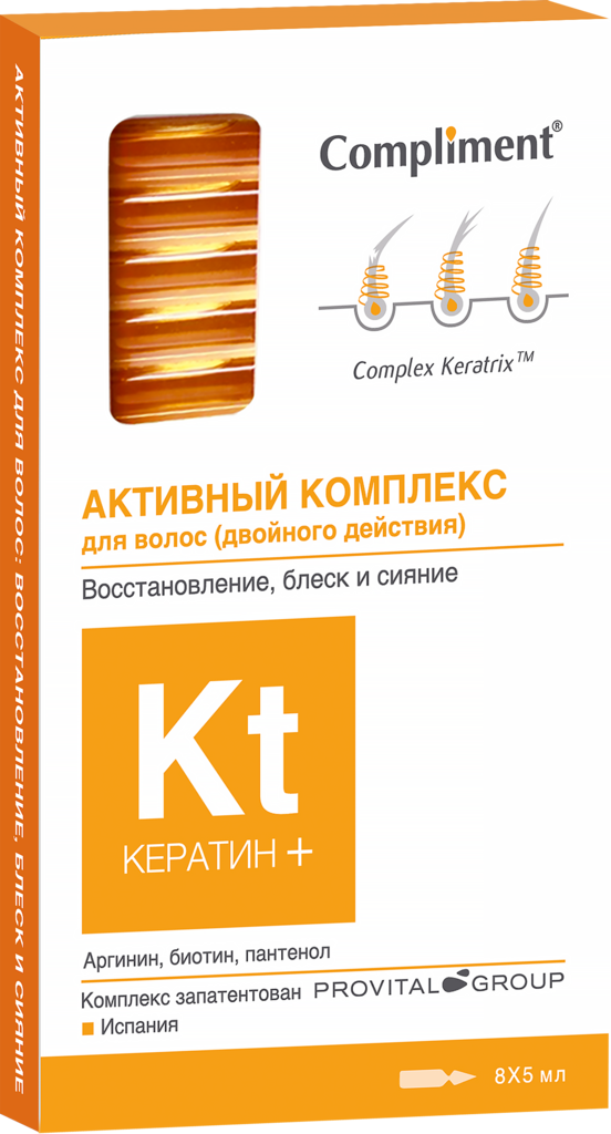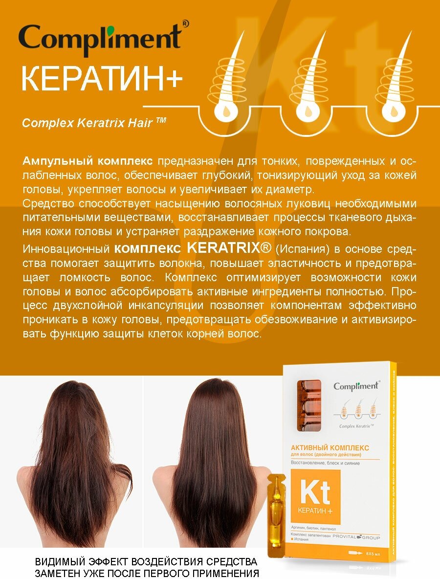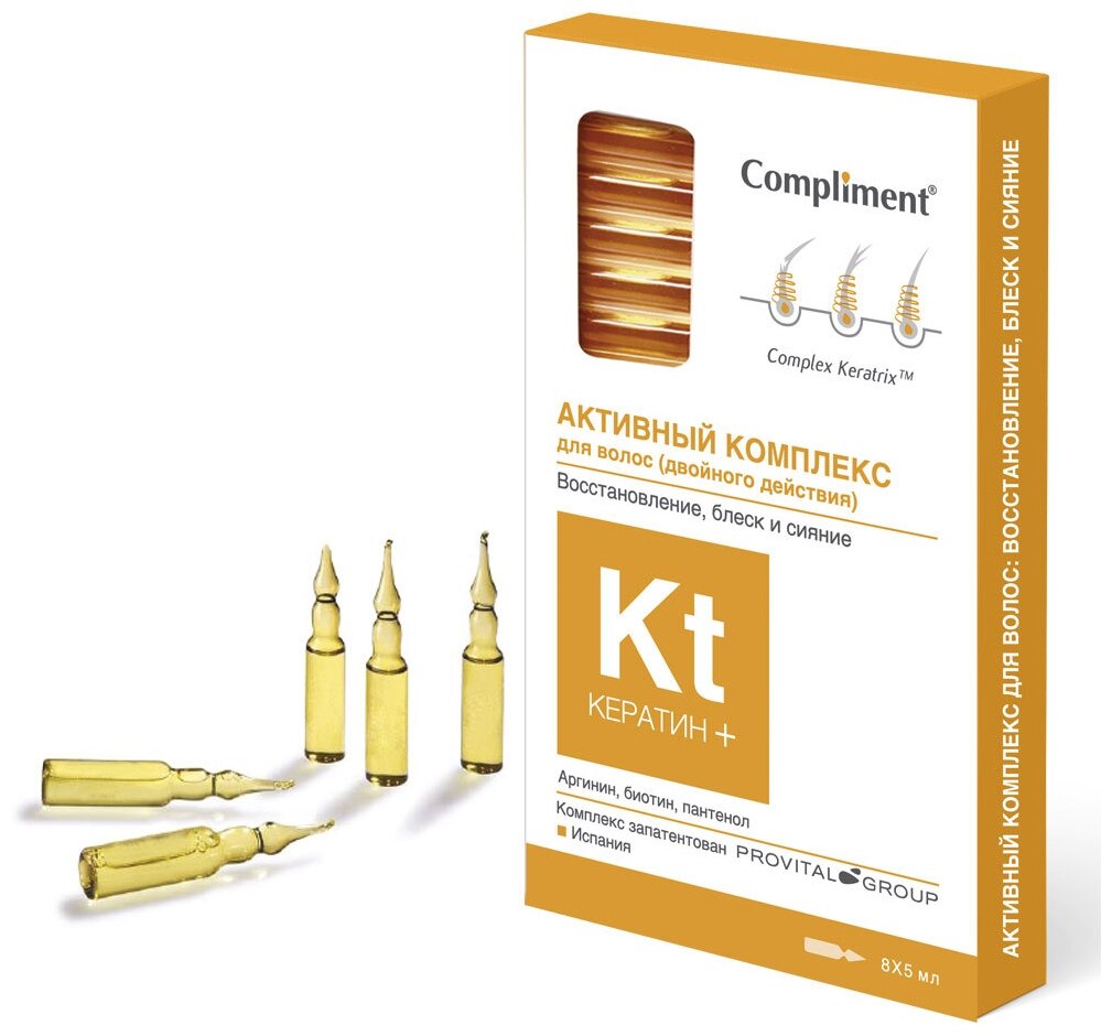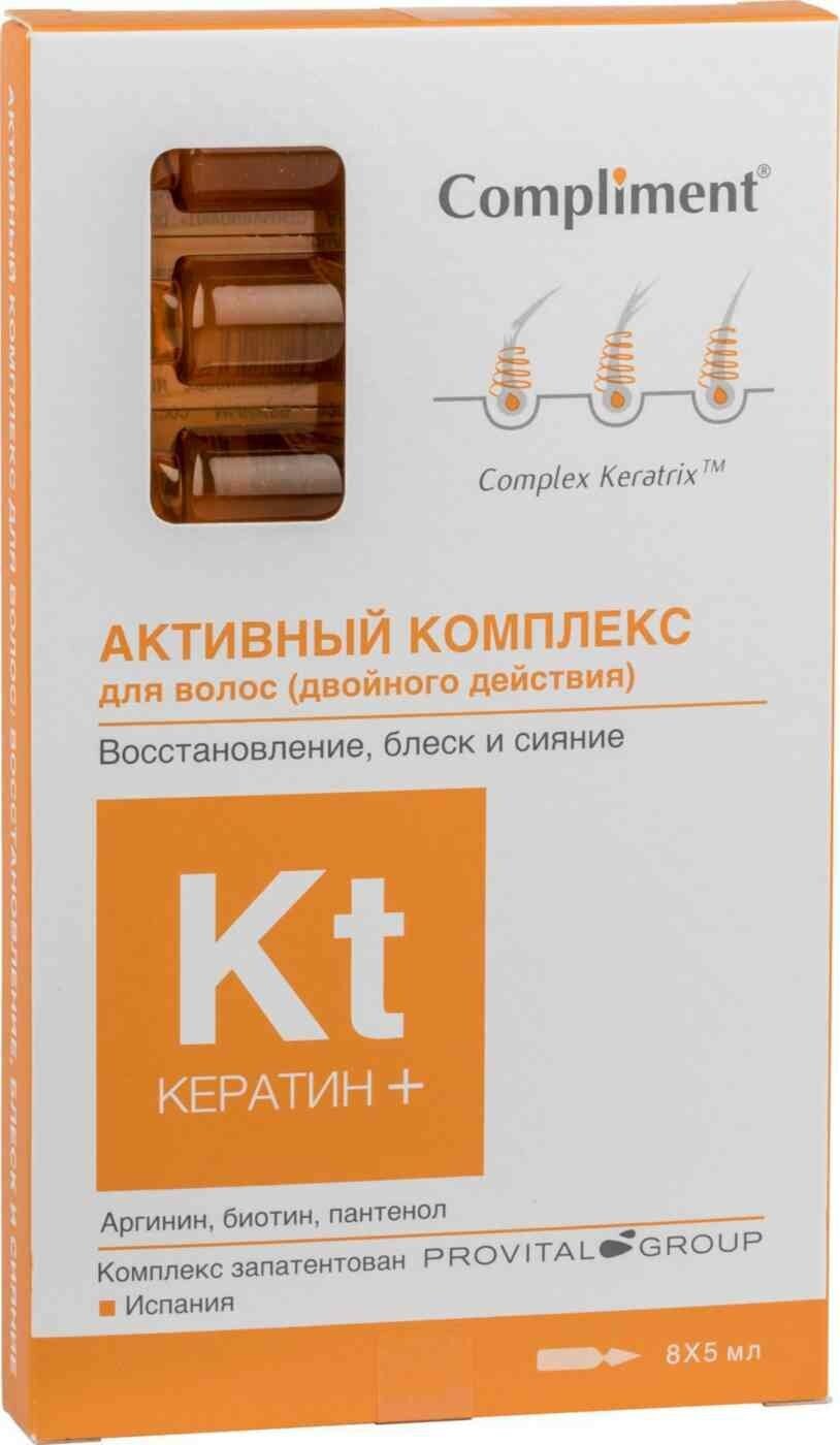 Комплекс для волос активный Кератин+" восстановление блеск и сияние Compliment 5 мл 8шт" ООО ТИМЕКС ПРО (1582840)