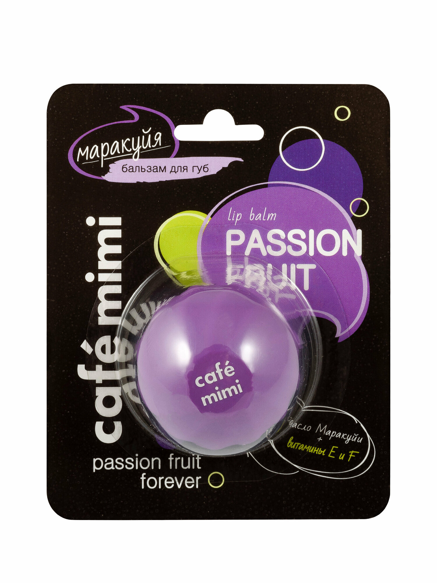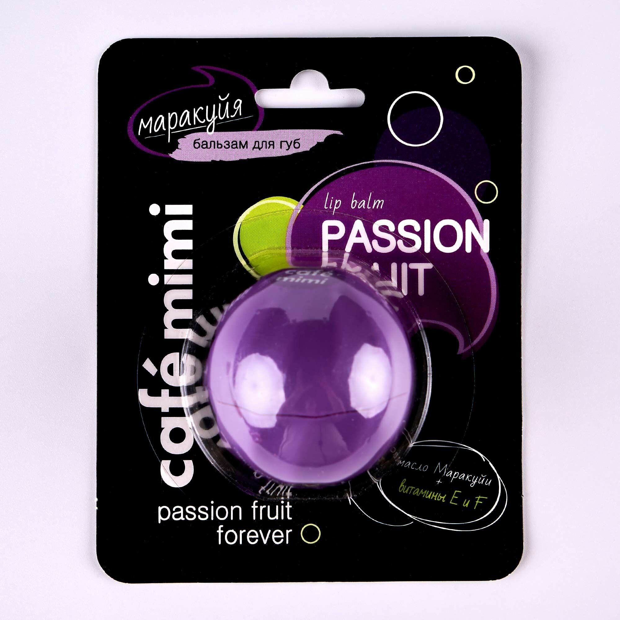 Бальзам для губ Cafe Mimi сочная маракуйя создан для настоящих ценителей тропических ароматов! Бальзам, богатый маслами ши и маракуйи, витаминами Е и F, глубоко питает, увлажняет, защищает от обветривания и сухости, дарит губам мягкость и шелковистость.