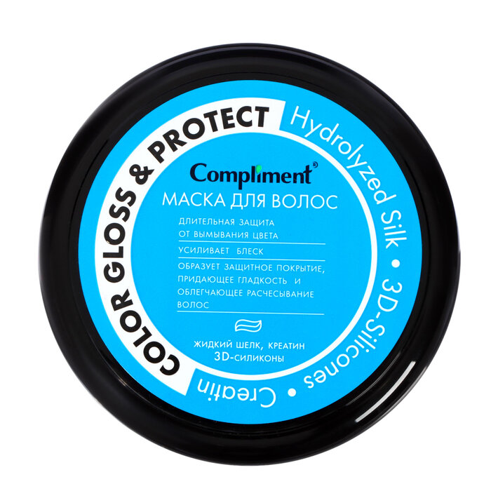 Маска для волос Compliment Color Gloss & Protect преображает волосы после первого применения, дарит гладкость и красивый блеск. Очень приятная тающая консистенция и легкий цветочный аромат.
