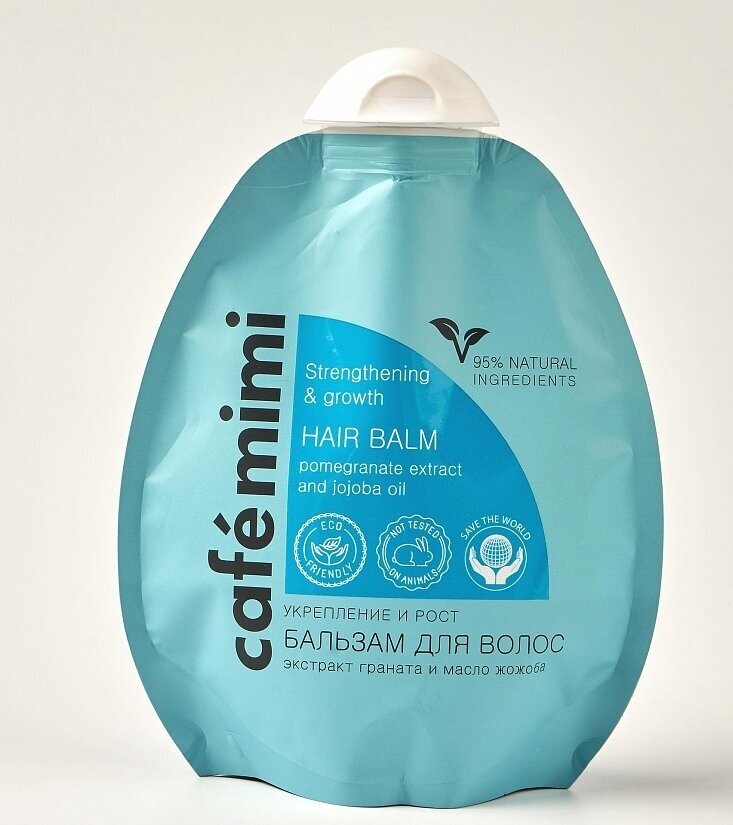 Бальзам для волос Cafemimi Укрепление и рост волос с экстрактом граната и маслом жожоба, которые защищают волосы и способствует активному росту. Бальзам идеален для любого типа волос. Не утяжеляет волосы.