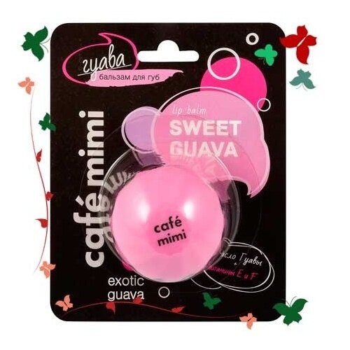 Бальзам для губ Cafe Mimi с ароматом сладкой Гуавы - истинное удовольствие для любителей экзотики! Бальзам бережно ухаживает за кожей губ, делает их мягкими и гладкими. Входящие в состав масла Гуавы и Ши, витамин Е и F глубоко питают, увлажняют и защищают кожу губ, интенсивно заживляют мелкие трещинки.