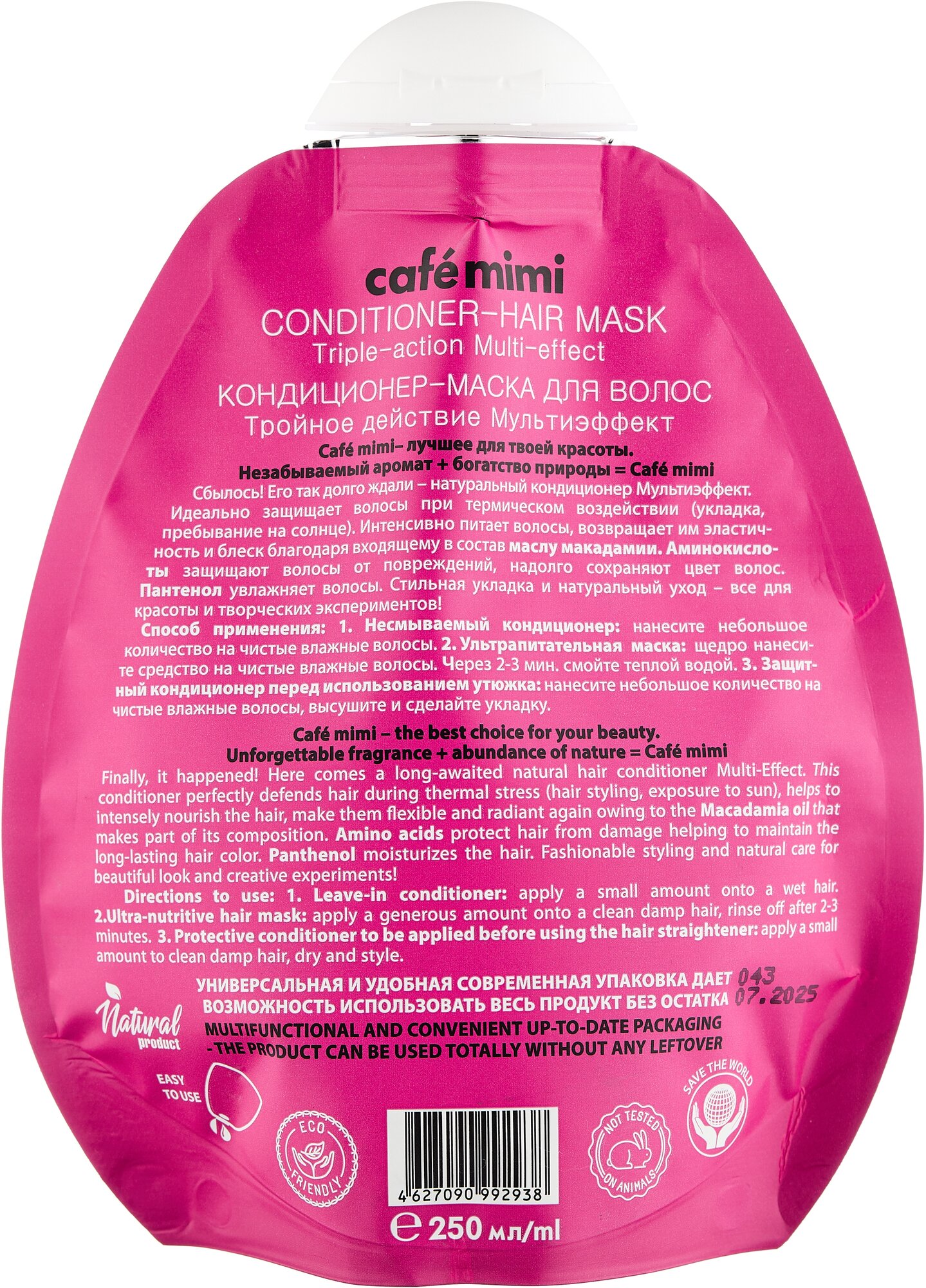 Маска-конд. для волос 3 дейст. Мультиэфф. масло макадам. пантенол аминокис. шелка Cafe mimi 250мл ООО ДизайнСоап (1578804)