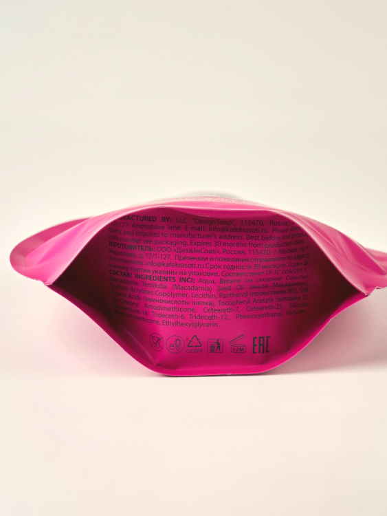 | Состав | Aqua, Betaine (из сахарной Свеклы), Macadamia Ternifolia (Macadamia) Seed Oil (масло Макадамии), Sodium Acrylates Copolymer, Lecithin, Panthenol (провитамин В5), Silk Amino Acids (аминокислоты шелка), Tocopheryl Acetate (витамин Е), Bis-Cetearyl Amodimethicone, Ceteareth-7, Ceteareth-25, Silicone Quaternium-18, Trideceth-6, Trideceth-12, Phenoxyethanol, Perfume, Phenyltrimethicone, Ethylhexylglycerin |