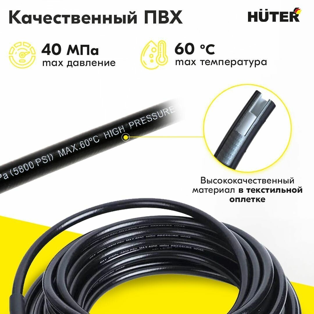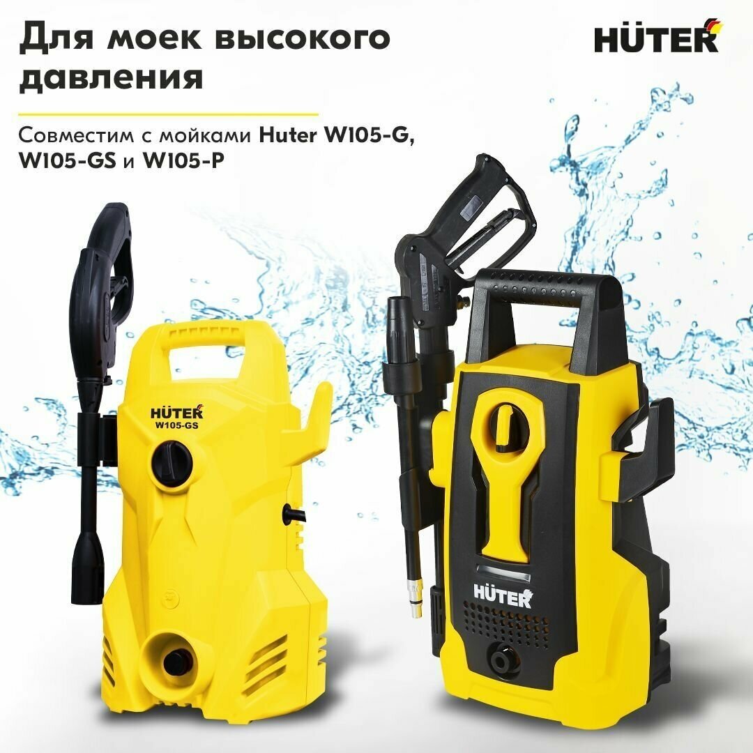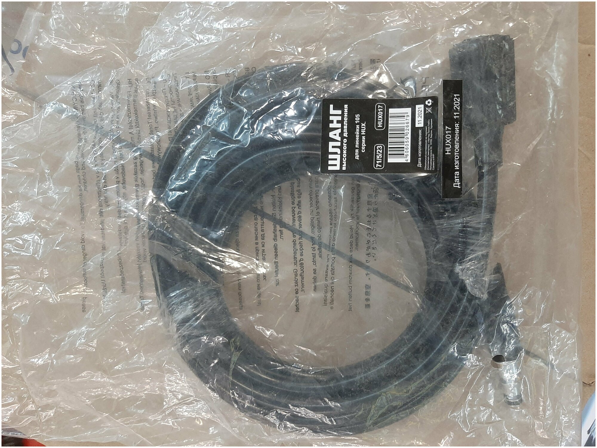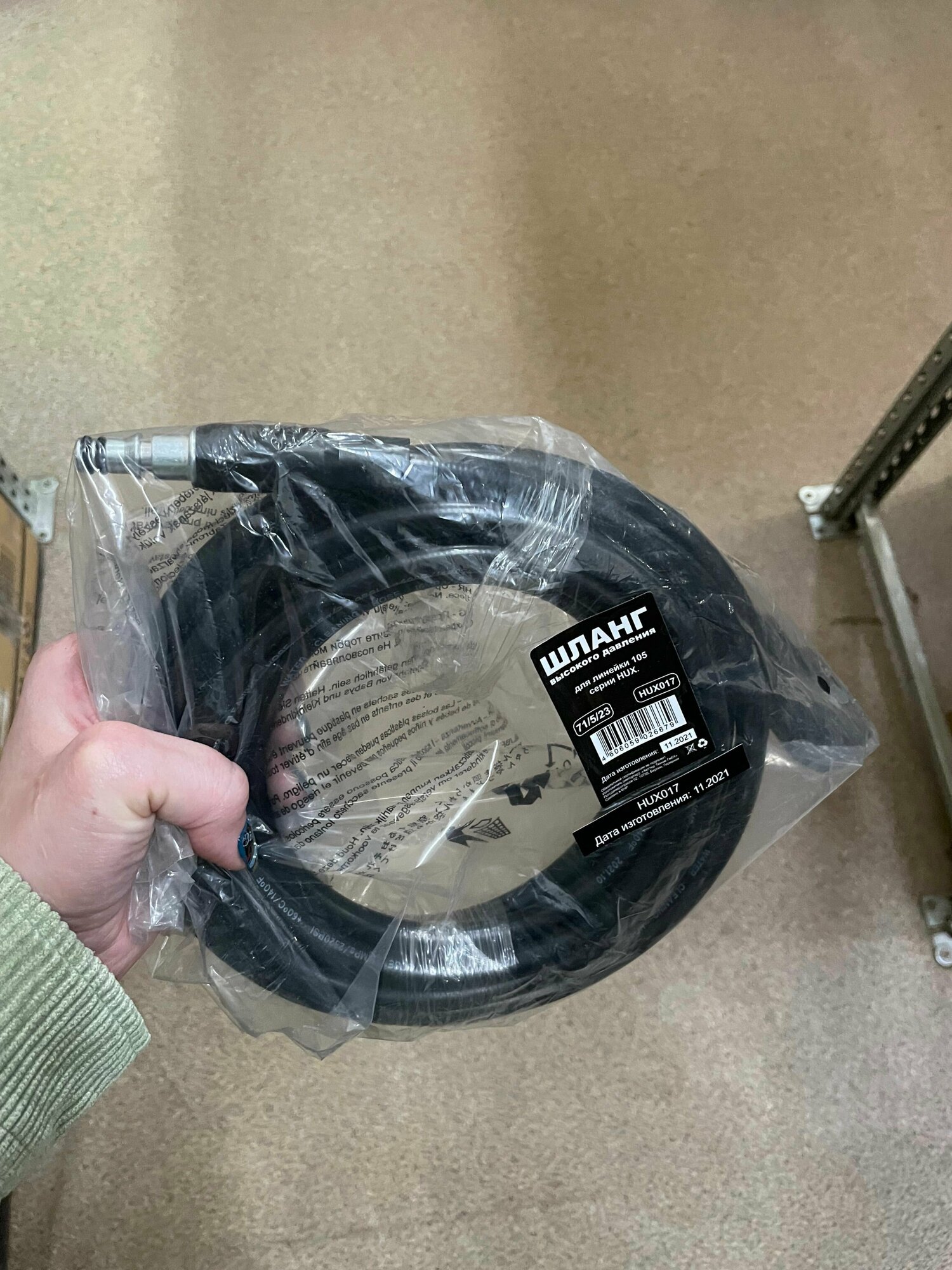 Дополнительно | на концах шланга установлены резьбовые коннекторы высокого давления на 1/2" накидная гайка к мойке (единый стандарт у всех моек) и на 1/4" накидная гайка с конусным упором к пистолету-распылителю |