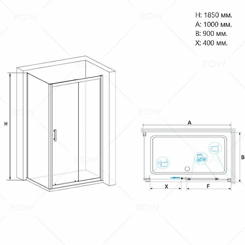 Душевой уголок RGW PA-145 90х100 стекло прозрачное. Душевой уголок прямоугольный, одна раздвижная дверь. Трап или поддон приобретается отдельно.