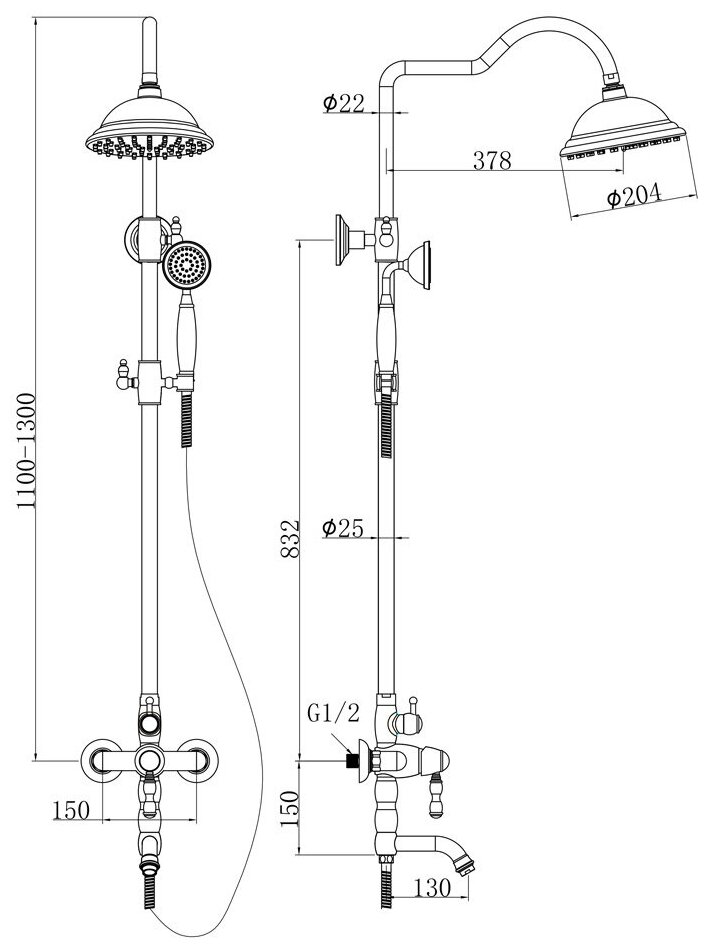 | ВКоробке | Душевая стойка - 1 шт. Верхний душ - 1 шт. Лейка - 1 шт. Шланг - 1 шт. Смеситель - 1 шт. Инструкция - 1 шт. |