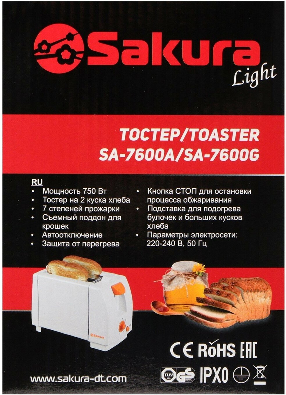 Тостер Sakura G White SA-7600G (белый, зеленый)