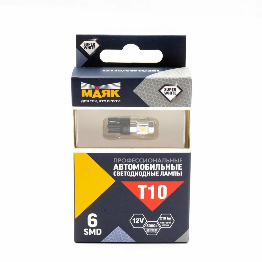 Лампа автомобильная светодиодная МАЯК T10 12В 2шт 12T10/SW11/2BL