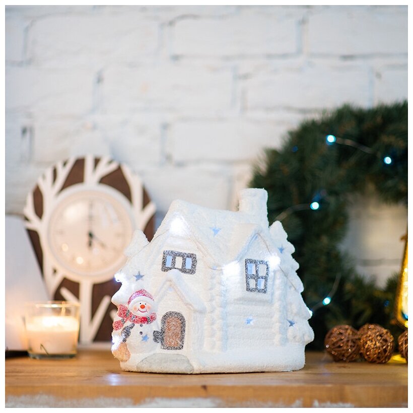Фигура Neon-Night Home Домик со снеговиком фор.:домик 1лам. Керамика (505-007)
