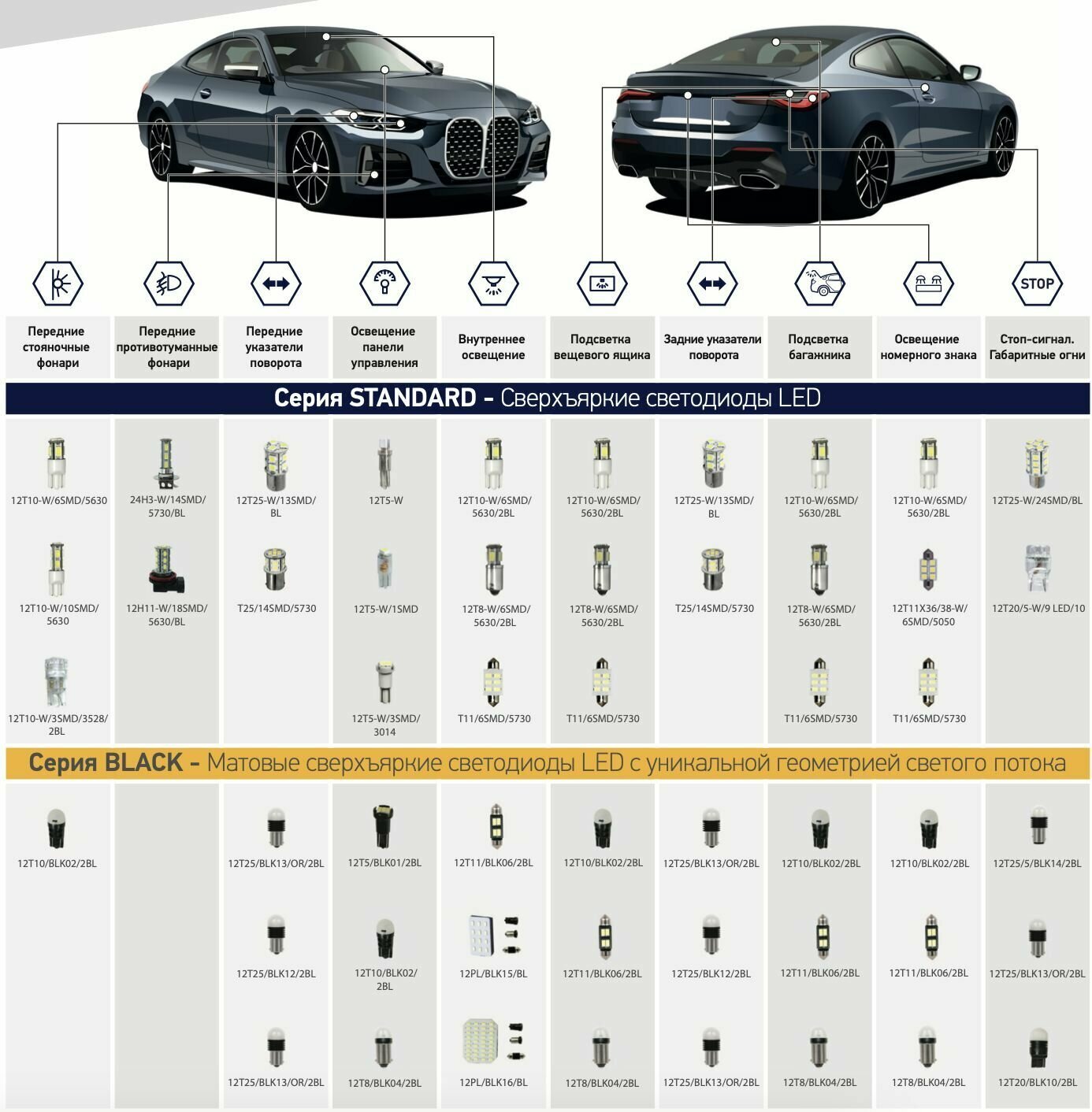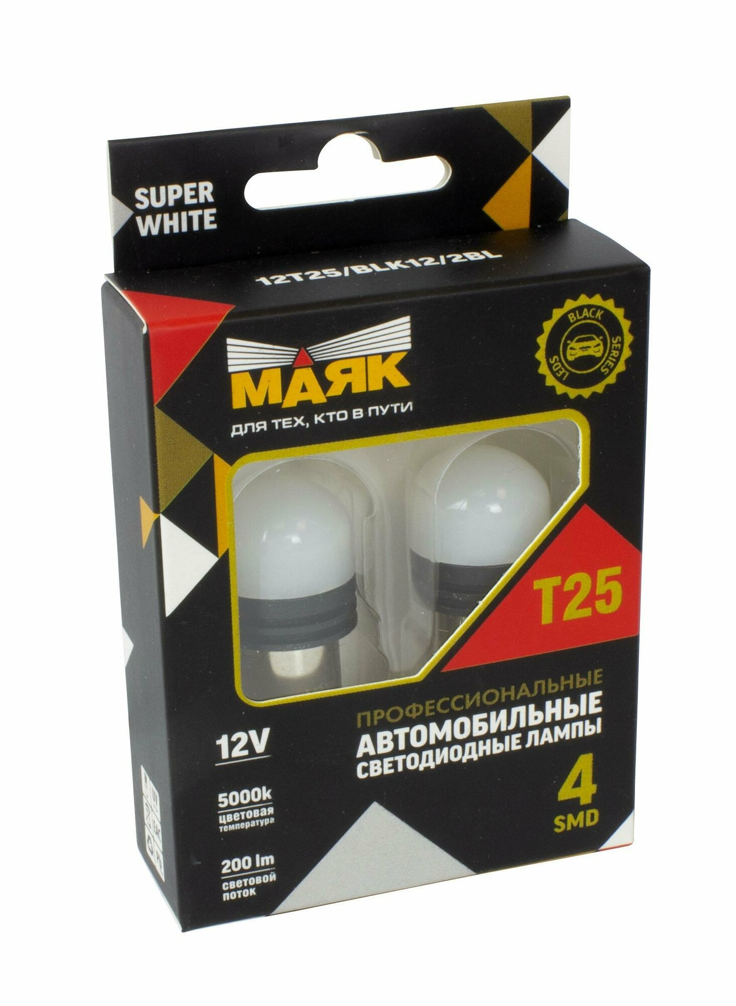 Лампа автомобильная светодиодная МАЯК T25 12В 2шт 12T25/BLK12/2BL