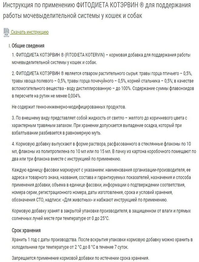 КОТЭРВИН® — лекарственный препарат растительного происхождения, предназначенный для профилактики и лечения болезней мочевыводящих путей у кошек :