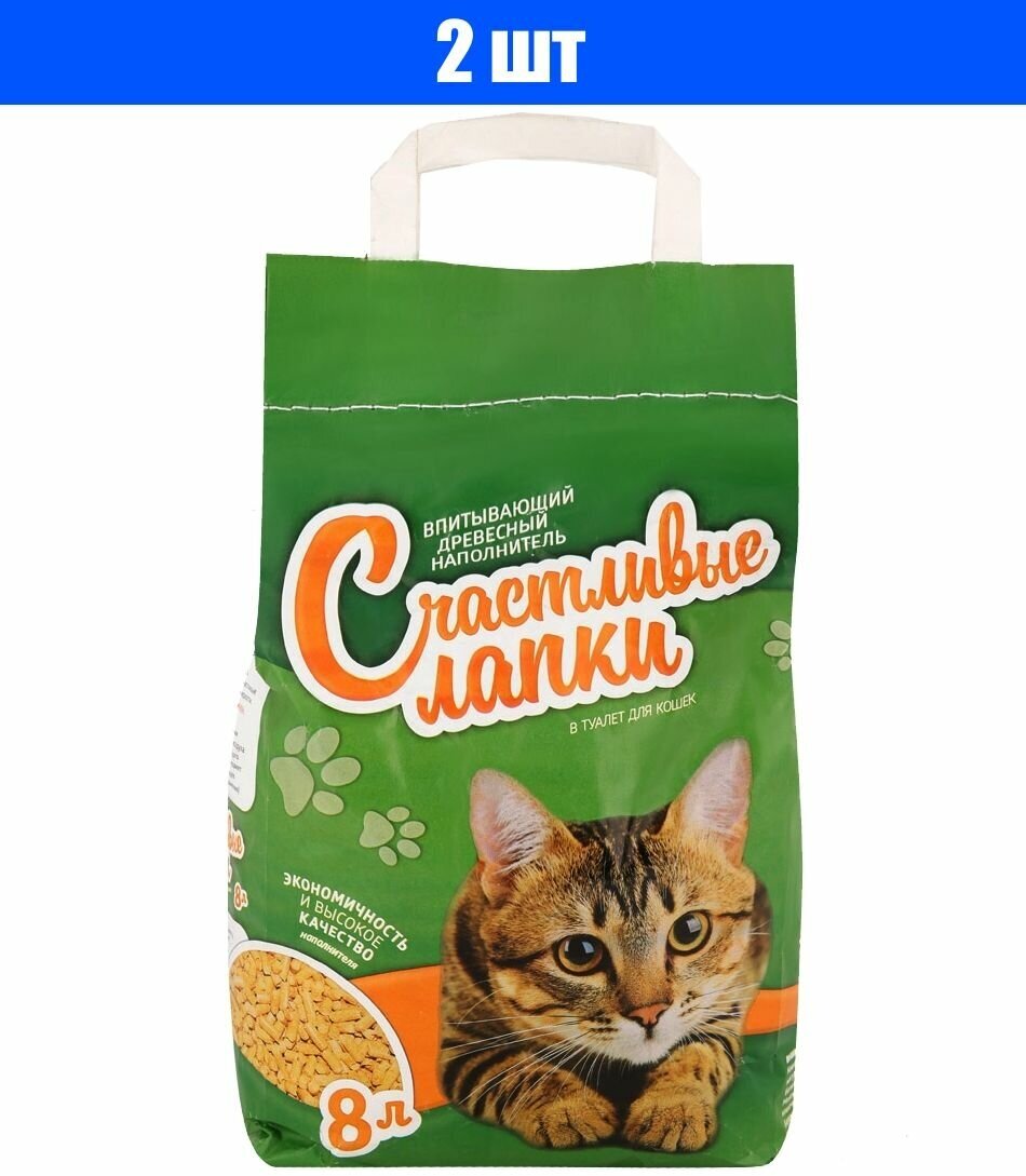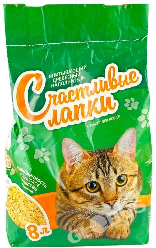 Наполнитель Счастливые Лапки Древесный впитывающий впитывающий древесный без запаха 3кг 8 л