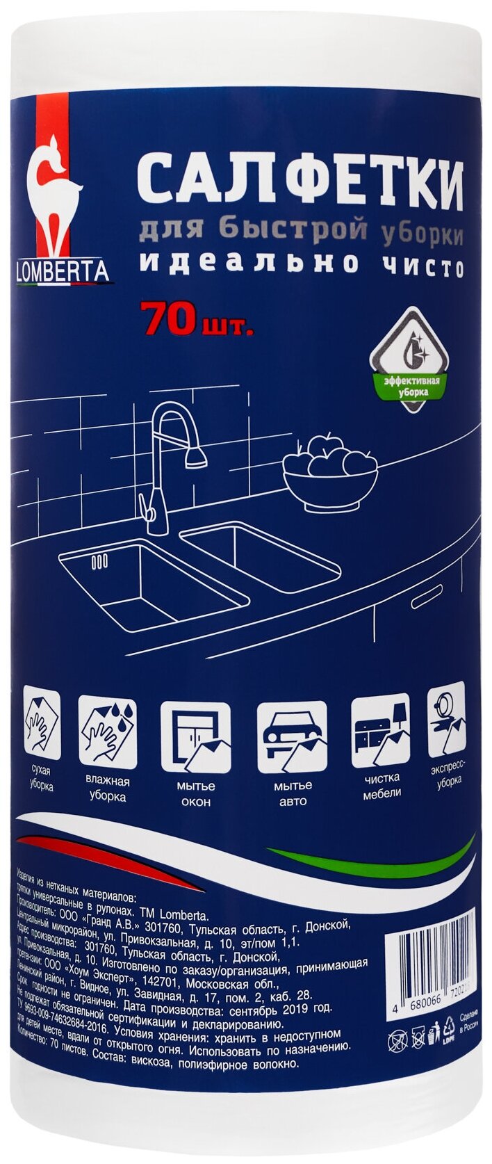 Салфетки для быстрой уборки LOMBERTA в рулоне 70 листов Салфетки в рулоне 70 листов