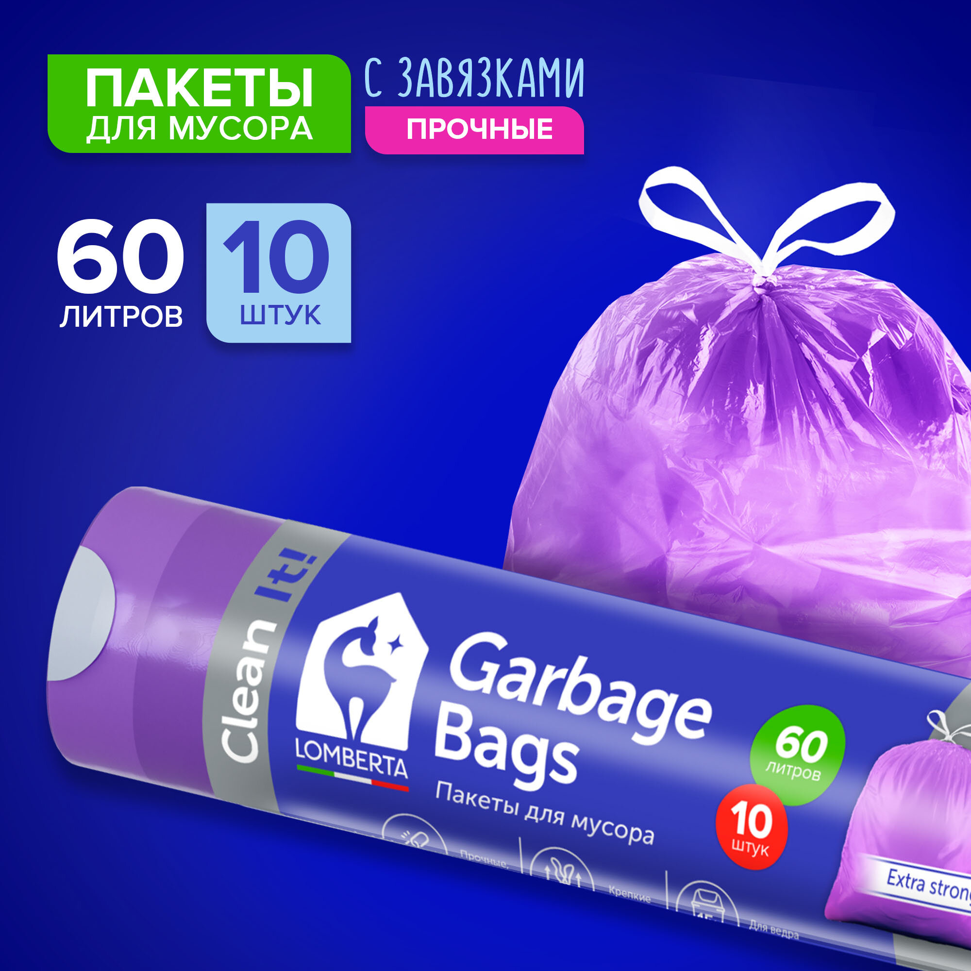 Пакет для мусора LOMBERTA с затяжкой ПНД 60л 10шт. (4680066720126)