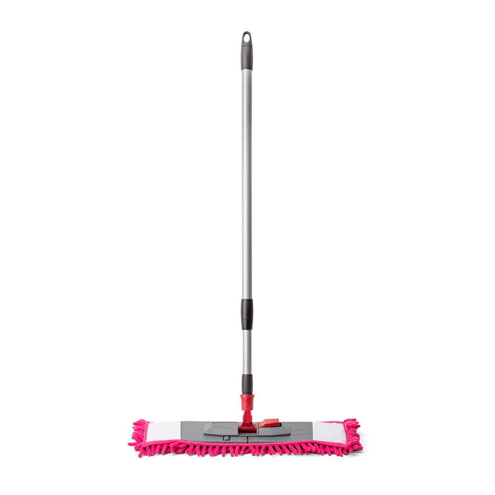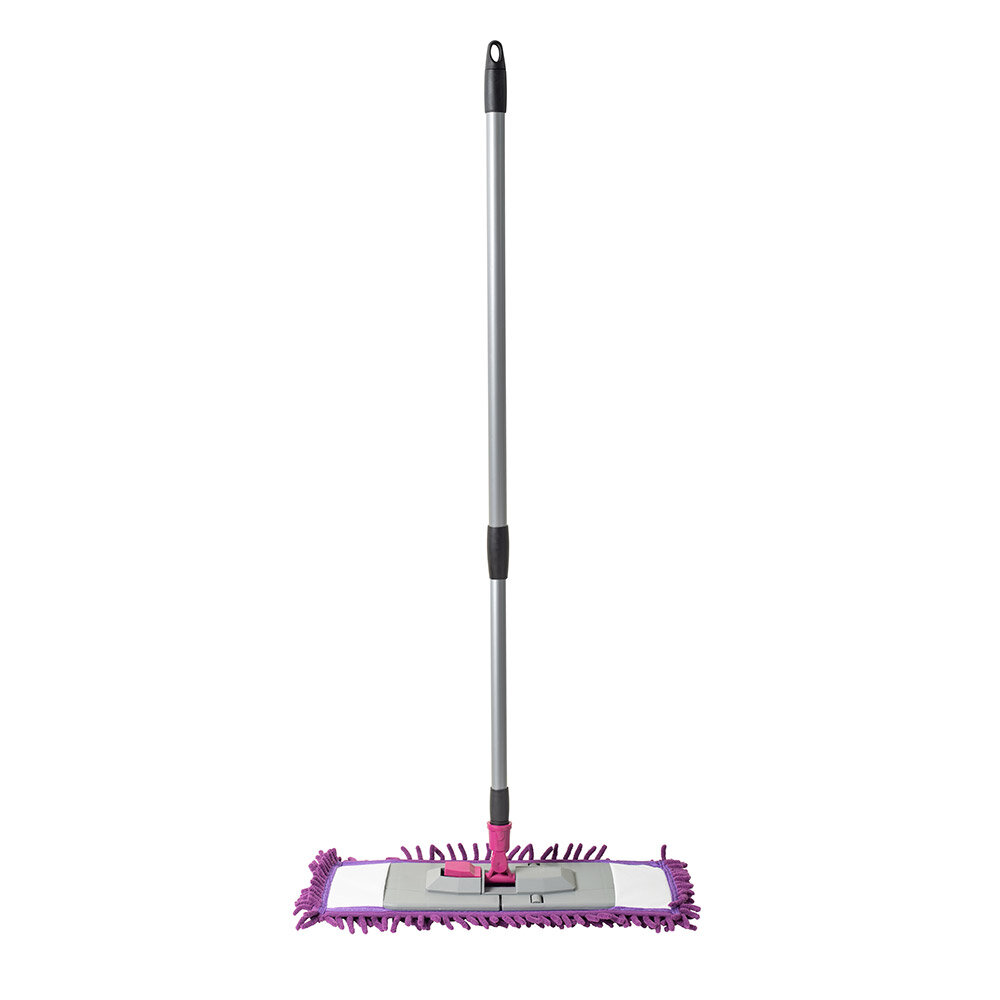 Изделие предназначено для сухой и влажной уборки помещений и подходит для разных видов напольных покрытий (ламинат, паркет, кафель, линолеум). Поворотный механизм швабры и плоская поверхность основания позволяют эффективно убирать в самых труднодоступных местах. Насадка выполнена из шенилла, который идеально подходит для удаления грязи из углов. С помощью стальной телескопической ручки можно настроить комфортную для работы высоту изделия. Во время хранения швабру можно подвесить в любом удобном месте. При н