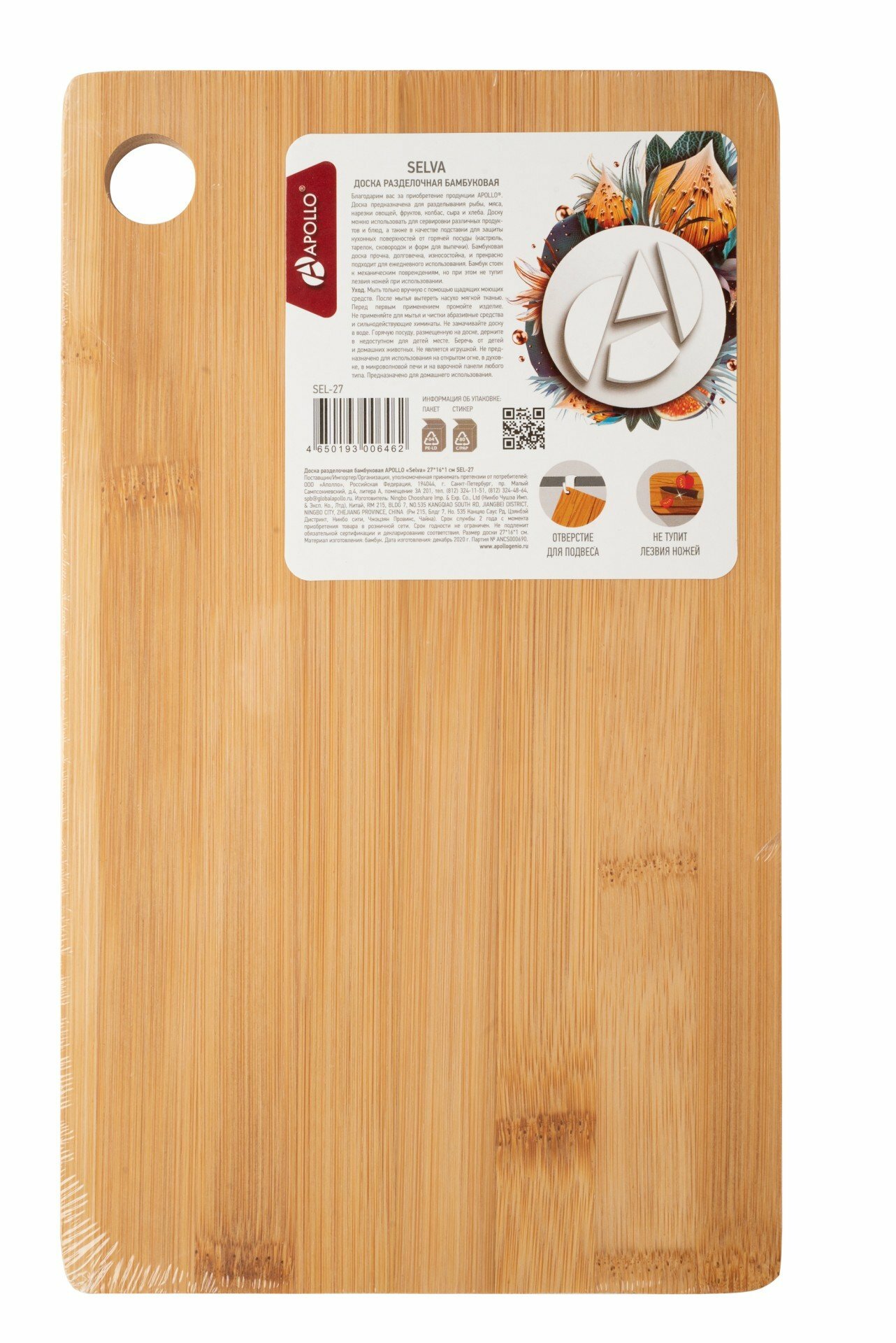Доска разделочная бамбуковая APOLLO "Selva" 30х19х1см SEL-30
