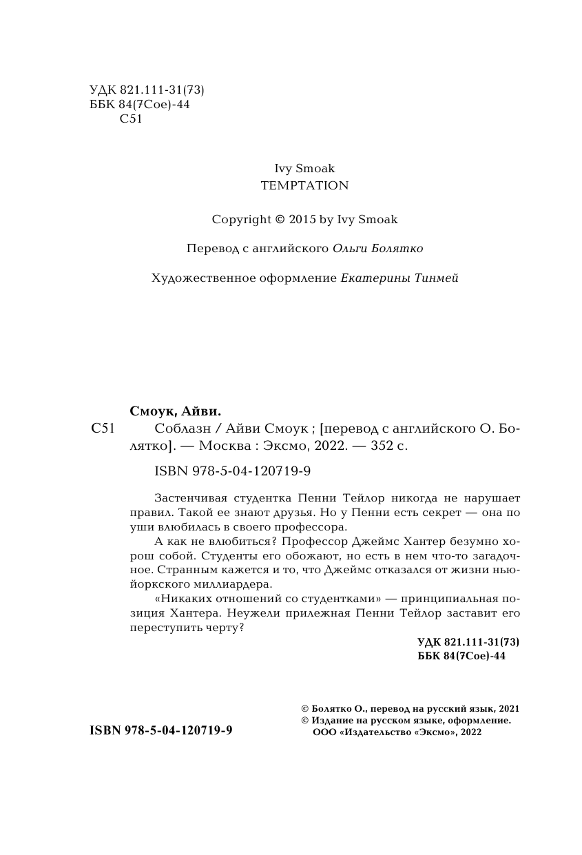Книга: Соблазн (Айви Смоук); Эксмо, Inspiria, Редакция 1, 2021