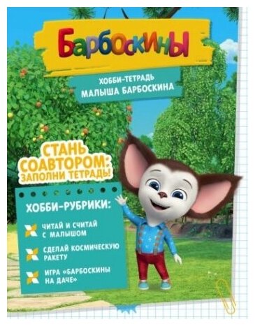 Малыш Барбоскин - самый младший в семье. Он любит играть и веселиться и обожает проводить время со старшими. Как и Гене, Малышу нравится узнавать новое. Он любит гонять мяч с Дружком. А вместе с Розой и Лизой рисует, готовит и рукодельничает. Если у тебя тоже множество увлечений, эта хобби-тетрадь для тебя! Заполни её вместе с Малышом, и ты узнаешь больше о космосе, мультфильмах и старинных игрушках, смастеришь подарок для бабушки и дедушки, приготовишь горячие бутерброды и выяснишь, что такое неньютоновская жидкость. Ты создашь вулкан из пластилина и сыграешь в мемори. А ещё тебя ждут раскраски, интересные задания, головоломки и истории про Барбоскиных!