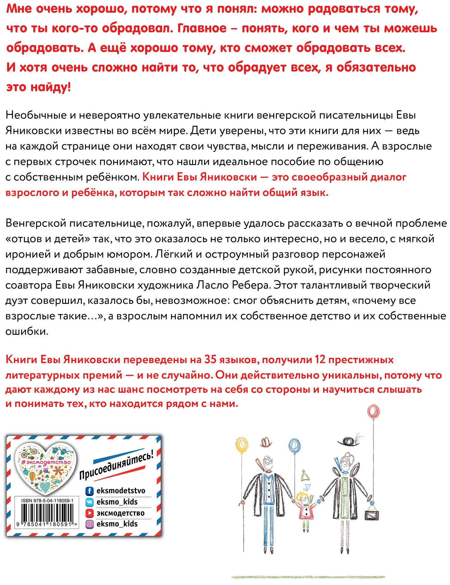 Главная особенность уникальных книг Евы Яниковски — это удивительная ёмкость и простота коротких текстов, которые с безупречной точностью раскрывают внутренний мир ребёнка. А кроме того, это своеобразный диалог на нестандартные темы между детьми и взрослыми, который помогает сократить разрыв между поколениями.