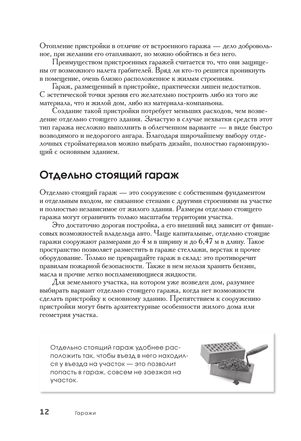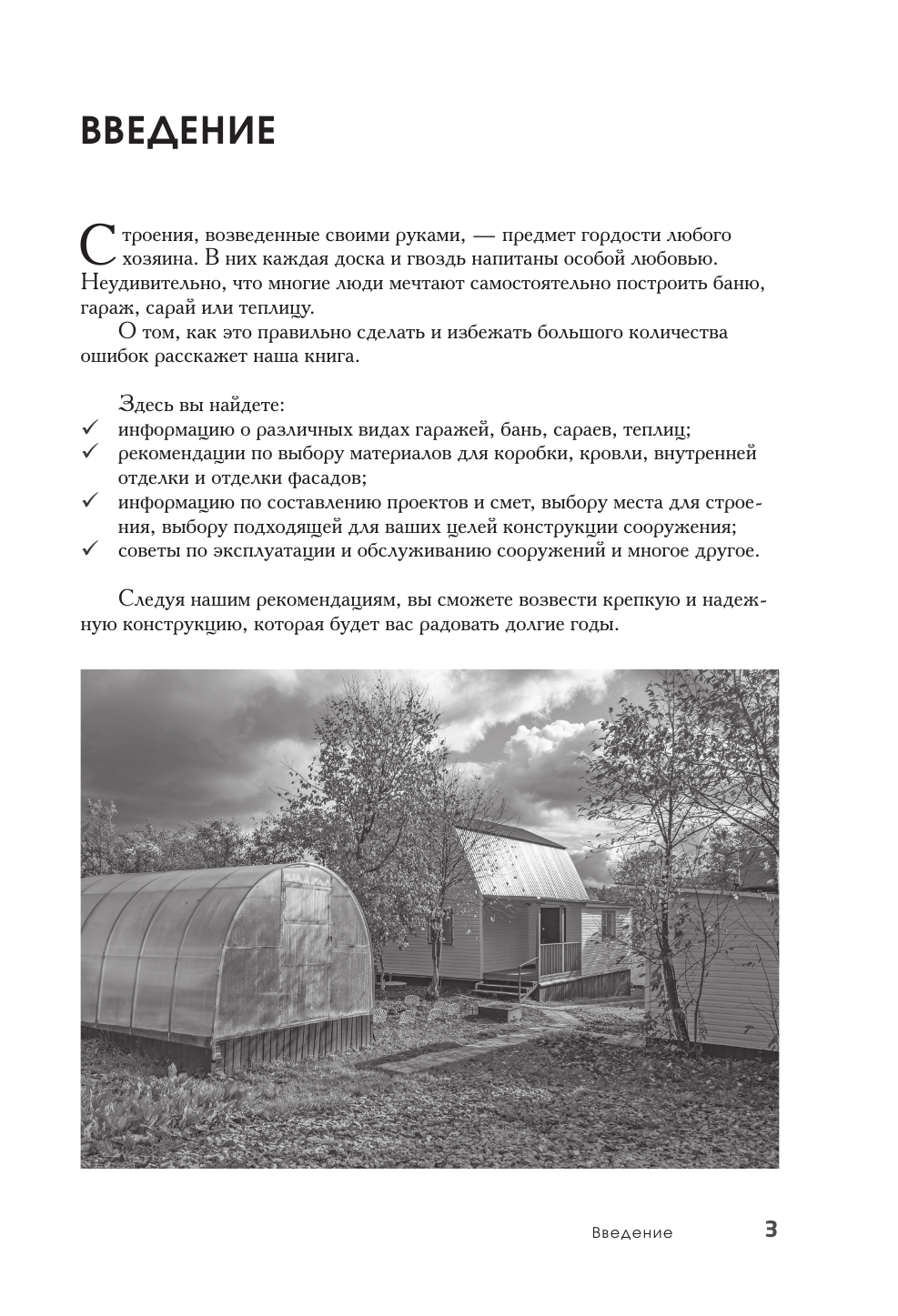 Незаменимая вещь, если вы собрались собственноручно возводить постройку из перечня. В книге удобные разделы, информация предоставлена без лишней воды. Отдельно хочется отметить не только функциональную состовляющую: как какие материалы на что реагируют, как правильно выбрать место и тд, но и подробное описание как постройка будет выглядеть в готов виде, как на внешний участка и дома рядом повлияет постройка гаража например. Огромное спасибо за такую добротную вещь.