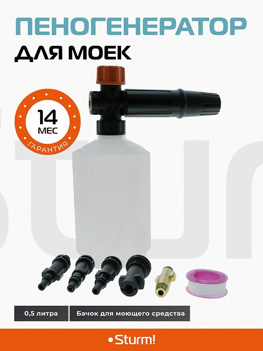 | Описание | Пеногенератор Sturm! 0,5л,регулир подача, Sturm,Hanskonner,Karсher,BOSCH |
