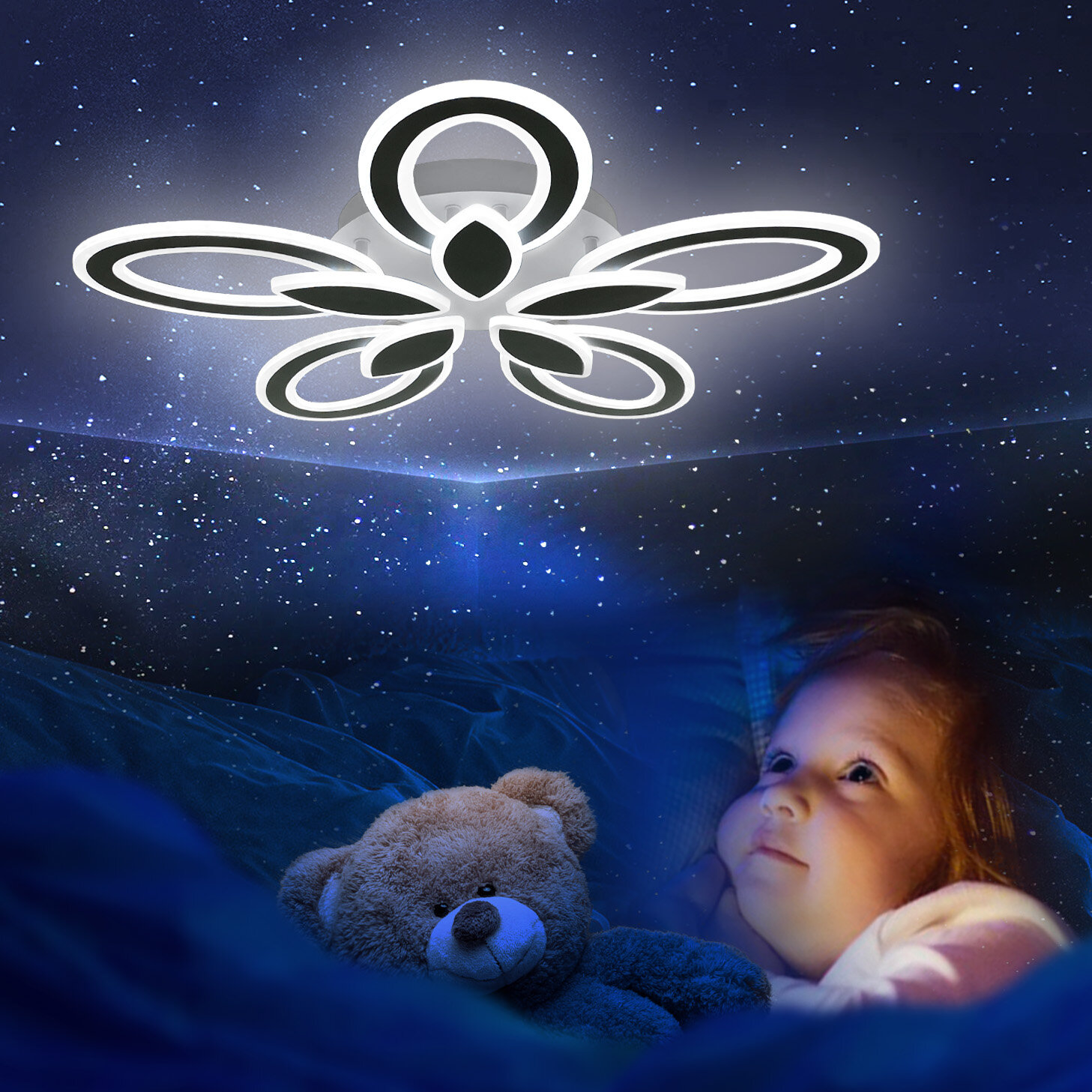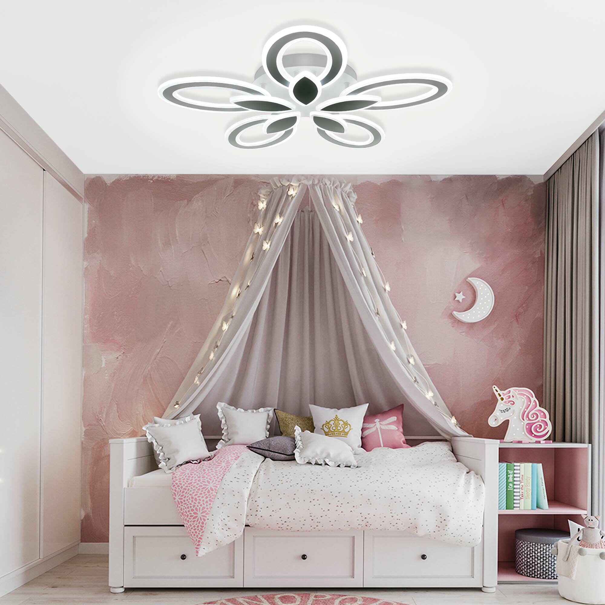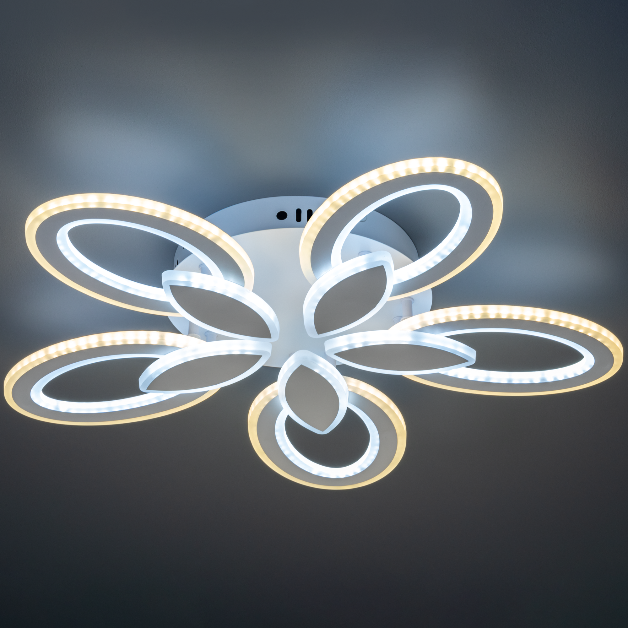 Уютный теплый, естественный дневной или бодрящий холодный - каждый цветовой режим преображает пространство и позволяет по-новому взглянуть на привычные детали. Регулируйте свет так часто, как захотите: режимы легко переключаются с помощью пульта. Использование светодиодов позволяет сэкономить до 80% электроэнергии по сравнению с обычными лампами накаливания. При этом светодиодные лампы не содержат токсичных веществ: люстра с ними безопасна для вас, вашей семьи и окружающей среды. Акриловые плафоны и металлический корпус сохранят эстетичный внешний вид на долгие годы даже при минимальном уходе. Плавные очертания плафонов гарантируют - ни один уголок не останется пыльным.