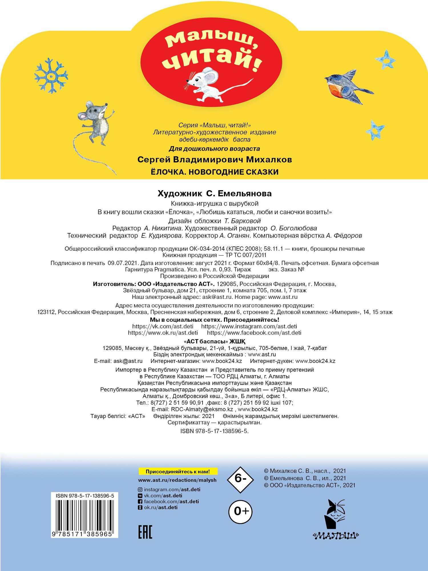 На сегодняшний день товар «Книга: Елочка Новогодние сказки (Сергей Михалков); Издательство АСТ, 2021» можно купить с кешбеком в 3 магазинах: book24, Буквоед, ЛитРес