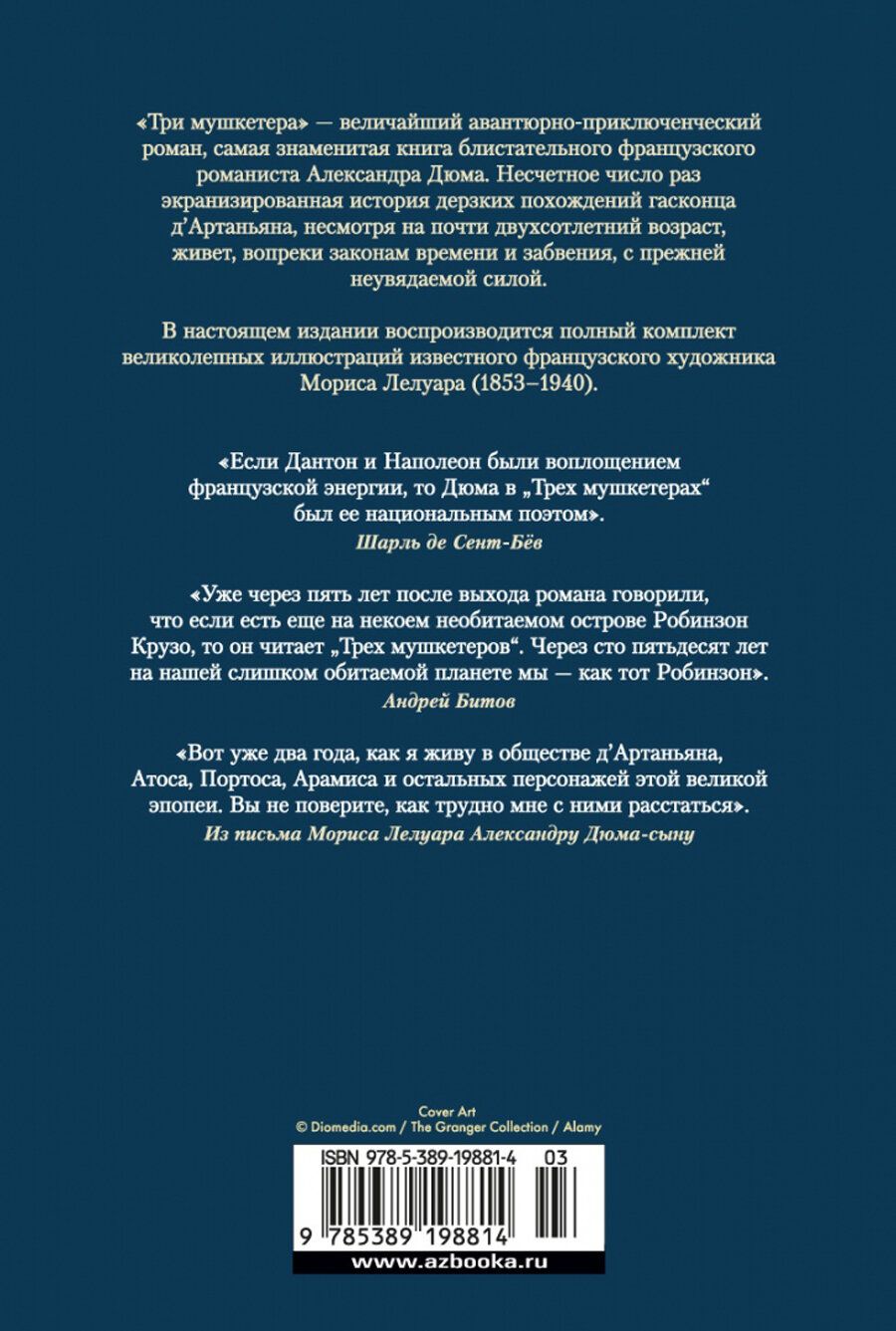 Отличное произведение, идеальное издание, хорошие иллюстрации. Читается на одном дыхании с огромным интересом. Весьма оживлённый и динамичный сюжет. Дюма меня не разочаровал. После прочтения сразу берусь за просмотр советской экранизации. Без каких-либо сомнений рекомендую книгу к прочтению. Также, мне кажется что это издание книги самое лучшее, поэтому советую именно это.