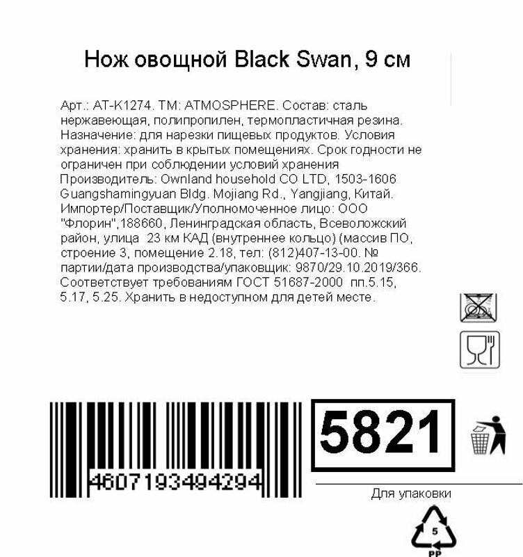 Сервис сравнения цен СкидкаГИД предлагает сравнить цены на товар «Нож овощной Atmosphere Black Swan 9см»