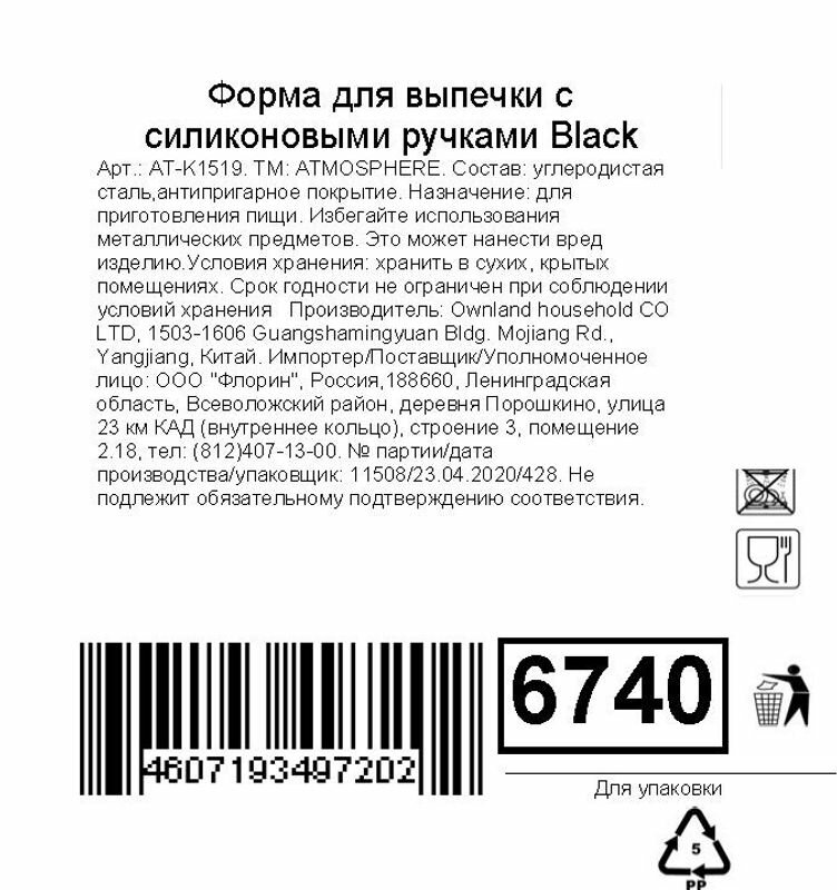 Противни и формы для выпечки Atmosphere ATM.Форма BLACK д/вып.сил.руч.